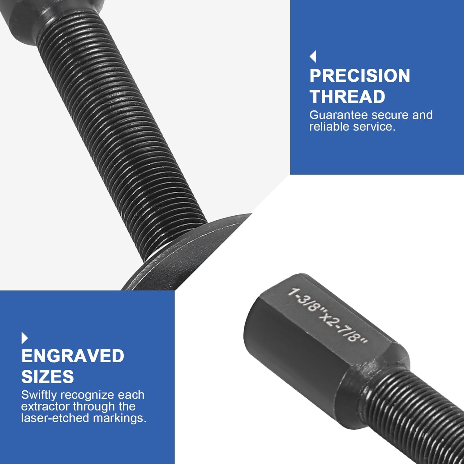 Features: This rear axle bearing puller can help to pull out semi-floating rear axle bearings quickly and effectively. The different standard SAE sizes work for most domestic makes and models. The washer firmly fixes the bearing and distributes the applied force across the entire bearing to prevent damage. The axle bearing puller or small bearing puller set comes with a carrying case that keeps the kit organized and tidy. This axle bearing press removal set works perfectly for your setup. You can choose small, medium, and large pullers. This axle bearing press removal set works perfectly for your setup. You can choose small, medium, and large pullers. The rear axle bearing pullers are constructed from high-quality steel, durable and long-lasting. How to Use: 1. Slide the proper puller through the center of bearing and flat against the backside of bearing. 2. Slide the washer down the center of the shaft against the front side of the bearing. 3. Tighten the nut on the smaller end of the puller. 4. Screw the sliding hammer (not included) onto the puller, sliding the hammer back and forth until the bearing comes out. Product Information: Material: Steel Color: Black Cover Inner Diameters: 1" to 1-7/8", 1-5/16" to 2-3/8", 1-3/8" to 2-7/8" Package Included: 3 x Rear Axle Bearing Pullers