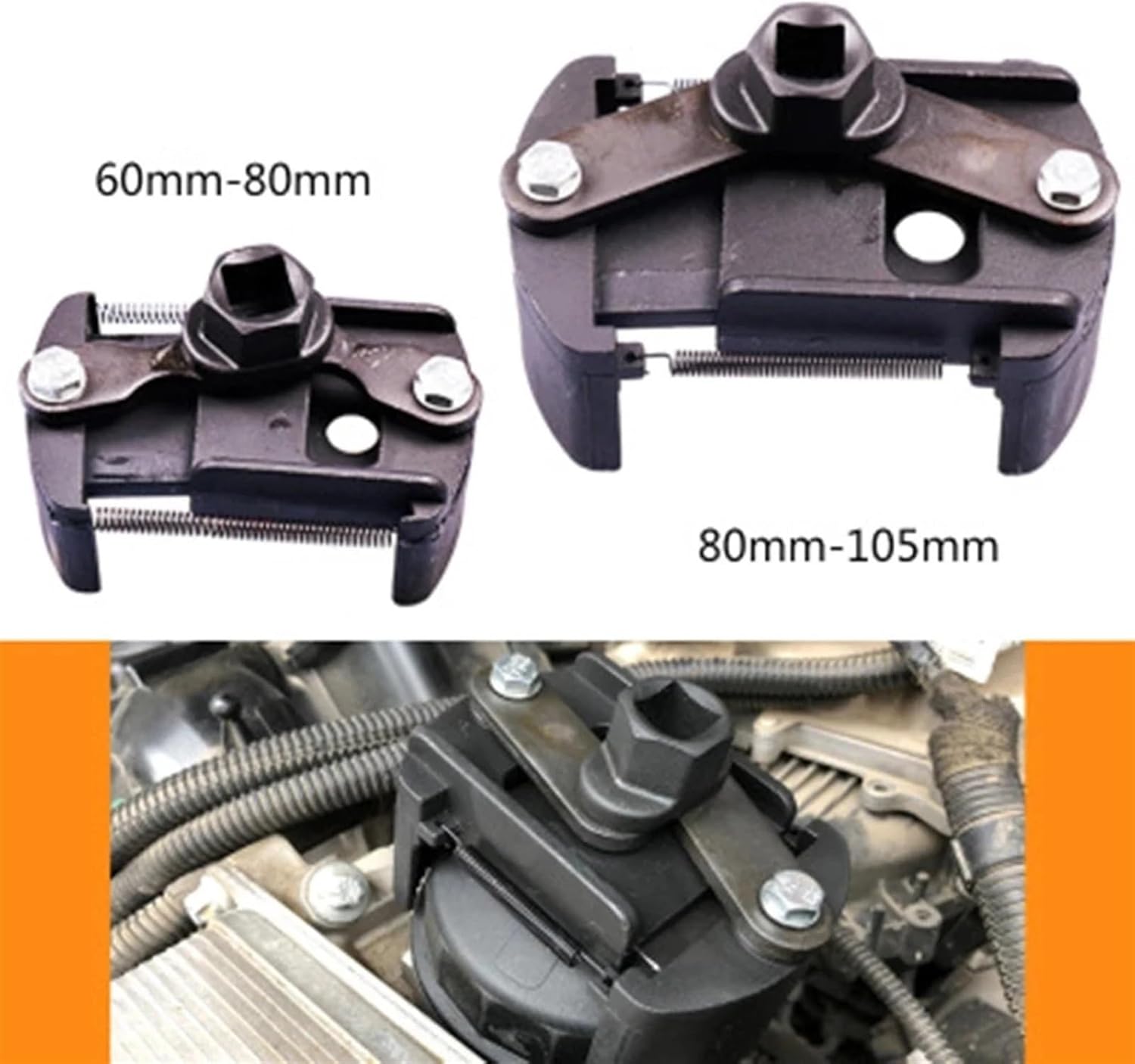 Fuel & Water SeparatorsUniversal Cast Steel Adjustable 2 Jaw Oil Filter Wrench Fuel Remover Removal Tool Two-Claw Cast Steel Filter WrenchesFeatures:[Practical]:This Adjustable Oil Filter Wrench is designed to remove filters without damaging the filter housing.[Serrated Design]:Special serrated design to hold the filter firmly makes it not easy to drop.[Fine Workmanship]:The meticulous sanding makes the texture softer, offers a comfortable operating sensation.[Adjustable]:The extended spring is installed on the wrench, makes the mobile rod easily adjust.[Operating Range]:It is suitable for oil filter form 60-80mm , can be used with 1/2 "ratchet wrench or 22mm opening wrench.Specifications:Type: Oil Filter WrenchColor: BlackQuantity: 1 pcMaterial: cast steelDrive Size: 1/2 "Operating Range: 60-80mmTotal Size: 55*60*60mmPackage:1 * oil filter wrench--Notice:1.Please allow error due to manual measurement. please understand!2.The colors may have different as the difference display, please understand.