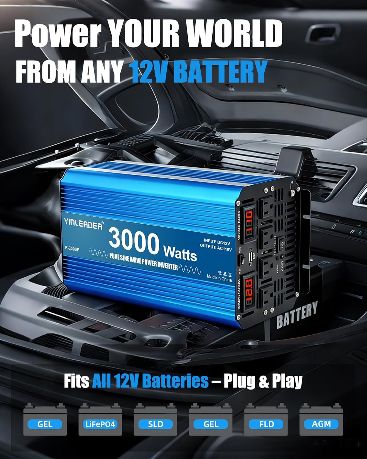 | BuiltIn Media | 1 x 3000W Power Inverter 2 x Battery cables 1 x Remote control 1 x User Manual |