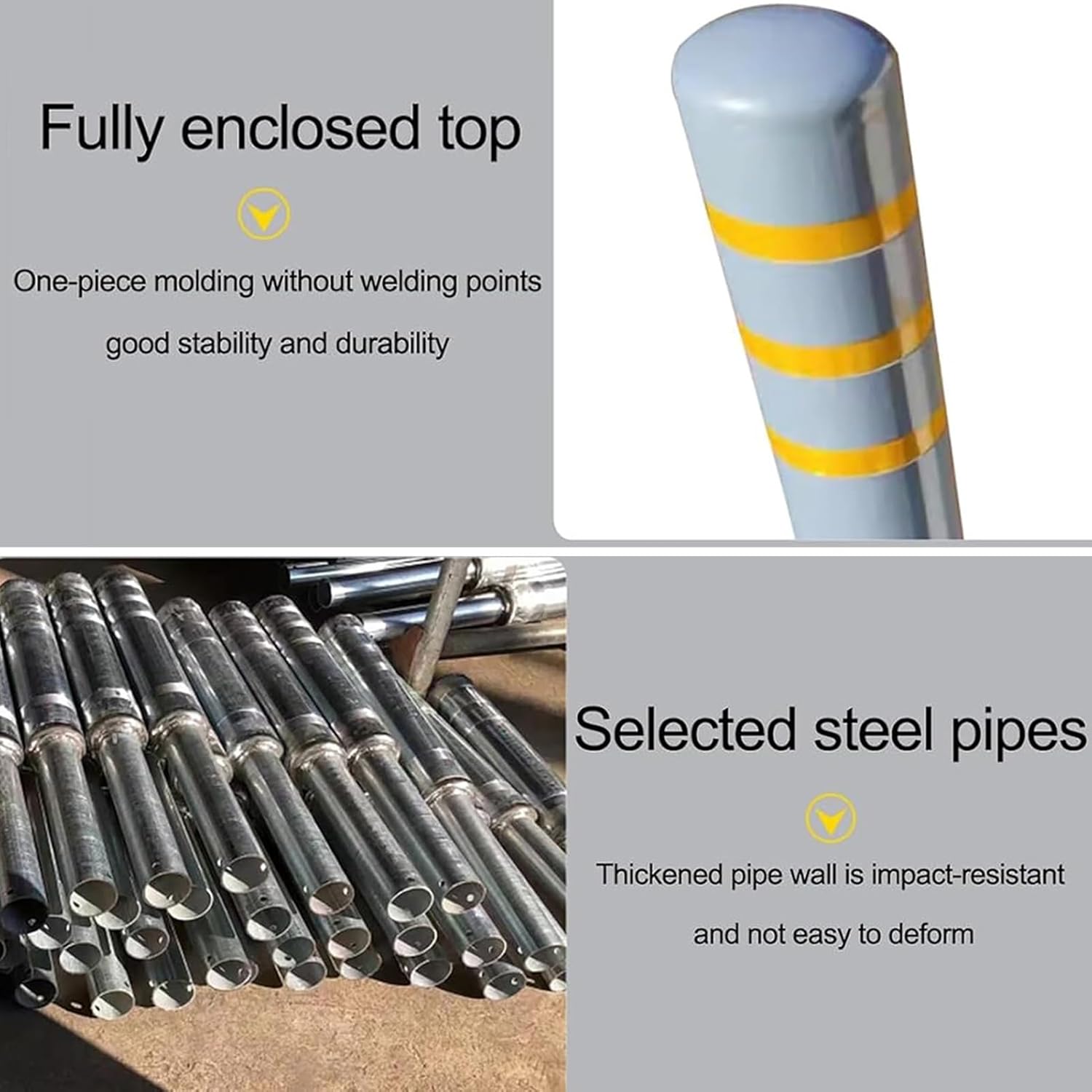 The YUGXTH parking bollard is a versatile and durable solution for improving safety in a variety of traffic-sensitive environments.Enhanced visibility: High-intensity reflective tape can effectively reflect light1 piece molding: Fully enclosed top of the bollard provides better stability and waterproof ingressEasy to install: Simply drill a hole and insert the columnProduct Specifications:Product Name: Parking Guardrails Security Bollard, Parking Barrier Bollards, parking stopper for garageMaterial: Steel pipeColor: Gray with yellow reflective stripsQuantity: 1PCS, 2PCS, 4PCS, 6PCS, 8PCSHeight: 100cm/39.3inDiameter: 11.4cm/4.4inPipe wall thickness: 0.3cm/0.1inPre-embedded: 40cm/15.7inColumn: 60cm/23.6inInstallation method: Embedded in concrete for more stable installationIdeal applications: Parking lots, school entrances, construction areas, public sidewalks, pedestrian protection and traffic controlRemarks:1. Due to differences in monitors, there may be slight color differences.2. Due to factors such as measurement methods and measurement methods, there may be slight errors.