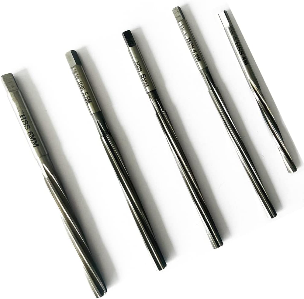 "1. HSS Valve guide reamers. 2. HSS Reamer Spiral Type. Squared Head - Fixed Reamers 3. This set includes 4mm - 4"" inches Long, 4.5mm - 4"" inches Long, 5mm - 4"" inches Long, 5.5mm - 4"" inches Long and 6mm - 5"" inches Long . 4. This set is made in India and we ship Express with valid tracking to USA and worldwide."