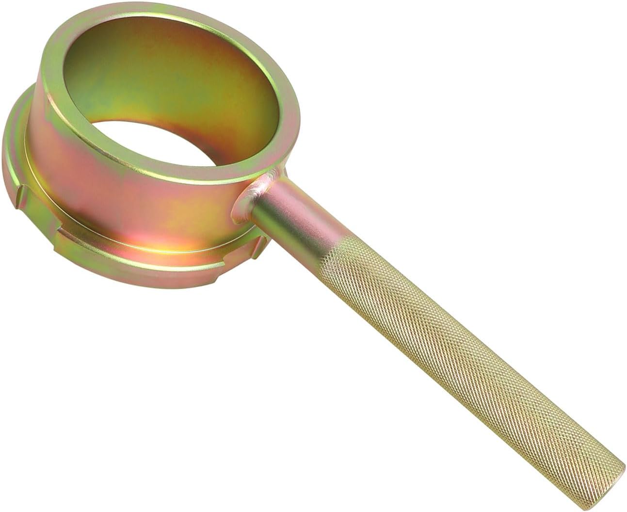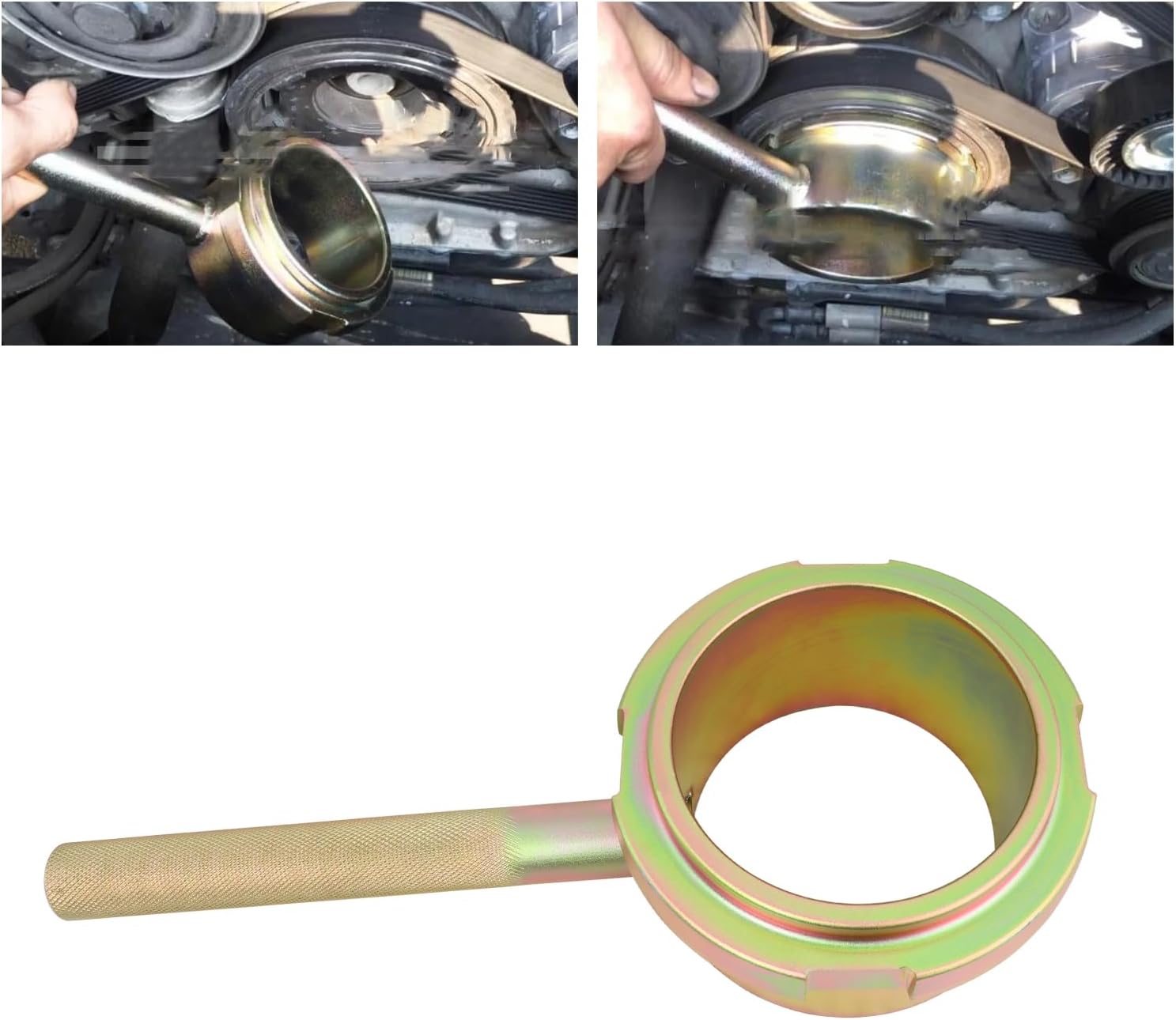 Function: Used to hold the crankshaft pulley (vibration damper). It does not cause excessive stress on the metal-plastic parts of the shock absorber when loosening or tightening the crankshaft pulley fixing bolts. Applicable Vehicle: Compatible with Mercedes Benz C, CLC, E, CLS, S, SLK, CLK, SL, GLK, M Class, Viano, Vito and Sprinter. Applicable Engine: Compatible with Mercedes Benz M272 M273 Engine, include: V6 engine: 2.5L, 3.0L and 3.5L, engine codes 272.xxx. V8 engine: 4.7L and 5.5L, engine code 273.xxx. Durable: This crankshaft pulley holder tool is made of high quality steel, high hardness and strong, not easy to break, the exterior is coated with a Anti-oxidation coating to prevent rust, extended service life