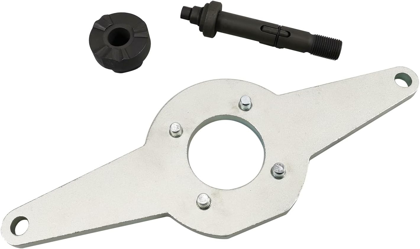 T10531 Vibration Damper Holding Tool Crankshaft Pulley Removal Shock Absorber Compatible with Audi/VW/Seat/Skoda 1.8 2.0 4V TFSi/TSi EA888 Vibration Damper Assembly 4 Cylinder Vehicle Model: Compatible with Audi. Compatible with VW. Compatible with Seat. Compatible with Skoda. Compatible with 4cyl 1.8L 2.0L 4V TSI/TFSI EA888 engines. Engine Codes (1.8L TFSI): BZB, CDAA, BPU, BYT, CABA, CABB, CDHA, CDHB, CABD, DAJB, CJSA, CJSB, CJEB, CJEE, CJED, CYGA, CDAC, CJSC, CGYA, DAJA Engine Codes (2.0L TFSI): CAWB, CCZA, CBFA, CCTA, CDNB, CDNC CDND, CJXA, CJXE, CJXH, CHHB, CHHA, CULA, CFKA, DEDA, CHJA, CAWA, CCZC, CCZD, CPSA, CJKA, CJKB, CESA, CETA, CFPA, CNCD, CPLA, CYRB, CYRC; CNCE, CYNB, CYPA, CULB, CULC, CNCB, CWZA, CJXF, CJXC, CJHB, CJXB Package Include Counterhold tool(T10531/1) Tensioning pins(T10531/2) Turning over tool(T10531/3) Knurled nut(T10531/4)