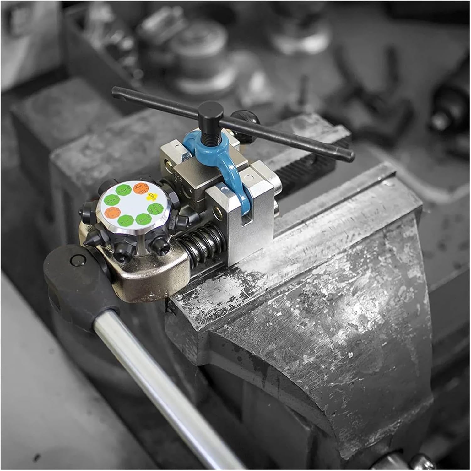 Name: Brake pipe enlarging tool(The color is random, please refer to the actual product Compatible With accuracy)Condition:[ Your Application]: 45-degree set creates single, bubble, and double flares on steel, stainless steel, and soft metal (copper, aluminum) brake lines, transmission cooler lines, and fuel lines; Compatible With 3/16-inch (4.75mm), 1/4-inch (6.35mm), 5/16-inch (8mm), and 3/8-inch tubing[Use Your Vise]: Use on a bench-mounted vise in your workshop or on a hitch-mounted vise in the field (not intended Compatible With use under car); 6-inch (15.2 cm) T-handle screw clamp holds die Dear distinguished guests, welcome to visit, and we look forward to providing you with excellent service.