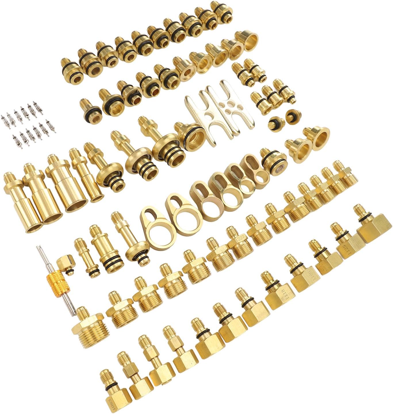 Feature: Item Type: Automotive Air Conditioning Leak Test Kit Material: Brass Fitment: Suitable for Vehicle Auto Air Conditioning packing list: 1 x Air Conditioning Leak Test Kit (77pcs) 10 x Screws 1 x User Manual 1 x Impact Box