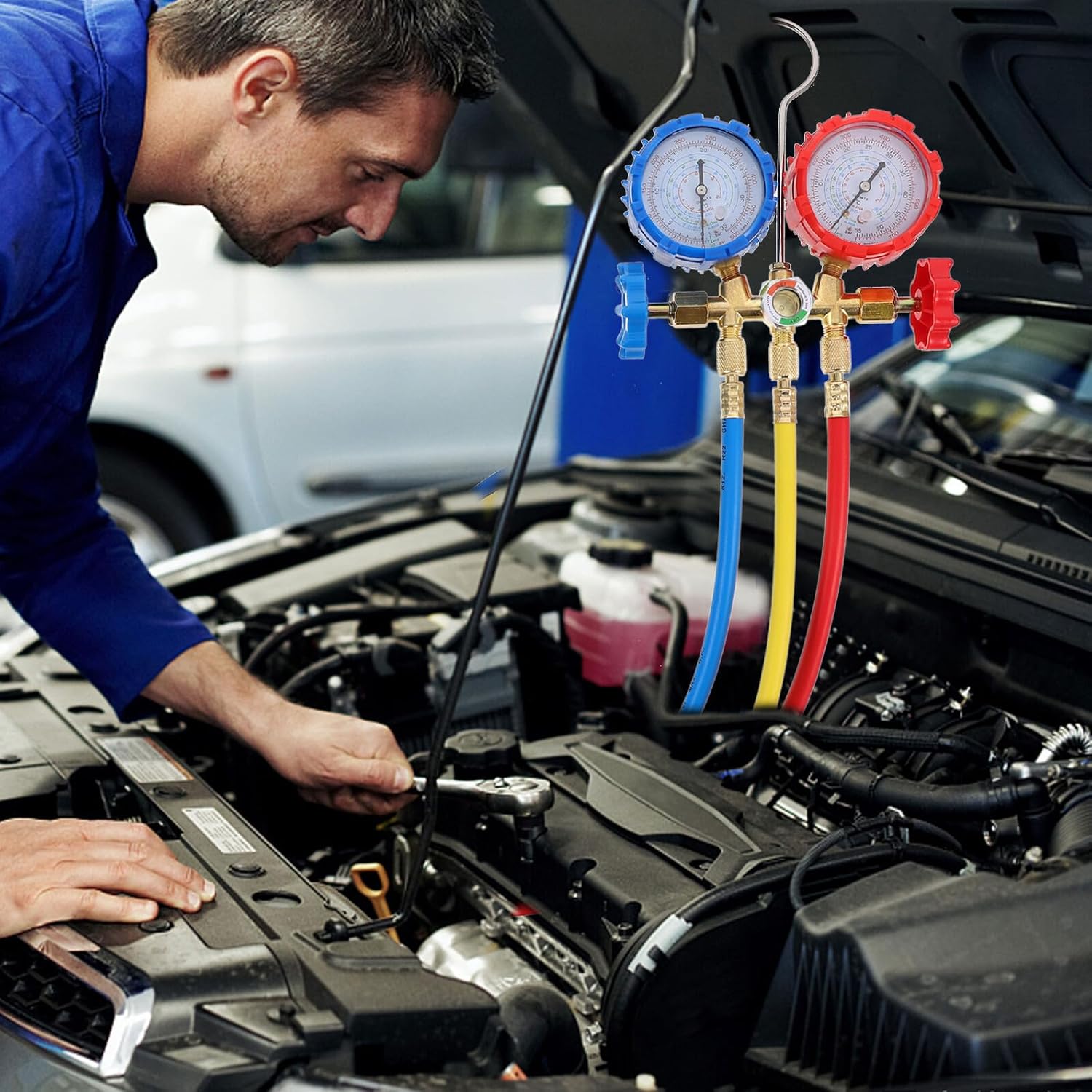 Package Include 1 Set x meter Features - Color: Assorted. -Product Info: conditioner plus fluoride meter - Material: Copper, rubber, plastic. - Size: About 17.00X12.50X5.00cm/6.68X4.91X1.97inch. - Simple and convenient to use, easy to carry and replace, with workmanship Tester. - Manufactured with , with excellent durability and practicality. - Suitable for automotive and home systems, complete and professional digital refrigeration gauges. - It is easy to install and operate, bringing you and convenient using experience refrigeration tools. - Used to check low side for accurate fill of your conditioner unit.Goods Informationrefrigeration gauges too Adopted special spring indicator, wit precise and clear gauge dial. Conditioner Fluoride Meter Comes with gauge, quick coupler and refrigeration hoses, convenient for you to install and replace the old one or worn one.auto ac measuring gauge The meter is made of , corrosion resistance