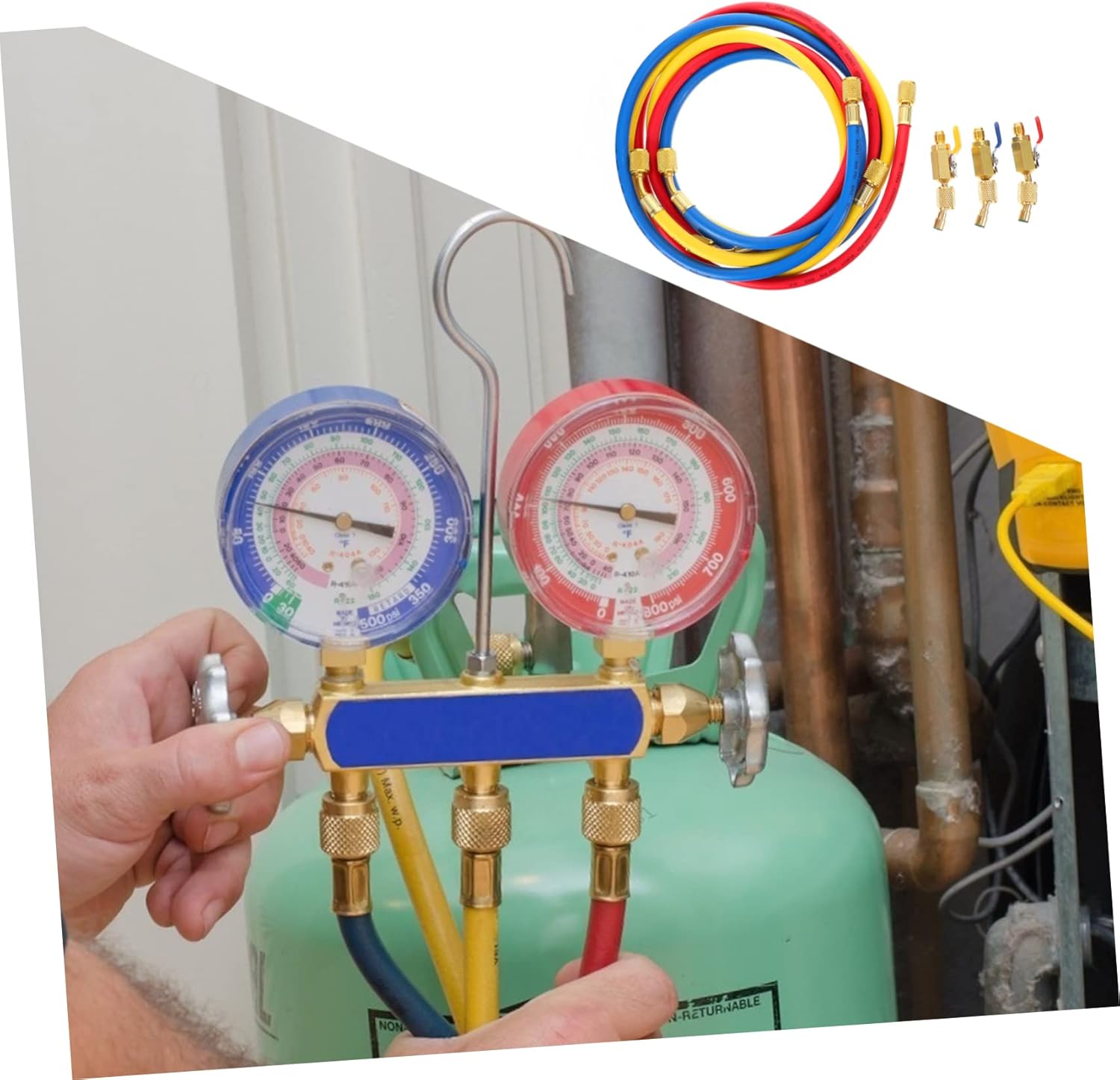 Package List 3 x recharge hoses (with ball valves) Features - Package: 3pcs charging hoses with ball for refrigerants , and Fluoride Adding Tube. - Material: Copper Recharge Hose. - Size: 152.00X1.50X1.50cm/59.74X0.59X0.59 inch Charge Hose. - Color: Yellow, blue, red Fluoride Adding. - High pressure refrigeration charging hoses provide you safety and convenience to test or recharge many HVAC systems Addition. - Professional diagnostic and service charging use on automotive and Fluoride. - Adopts precision production to stable characteristics and high reliability Charging Hose. - Easy to install and use. Provides you safety and convenience to test Adding Tube.Goods InformationFluoride Tube The hose is made of premium copper, which is oil-resistant, durable, wear-resistant, , does not harden on cold days, provides convenience and long life working. Recharge Hose This fluoride charging hose is suitable for refrigerants for car conditioner use