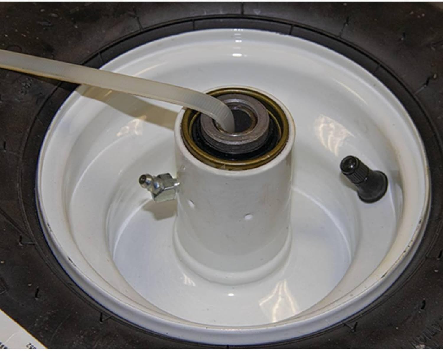 Applications: Exmark Lazer Z — All Series (E / S / X / AS / DS / XP) Exmark Front Runner — Commercial Zero-Turn Mower Scag Turf Tiger / Turf Tiger II — Front Caster Wheel Scag Tiger Cat / Tiger Cat II / Cheetah / Wildcat Toro Z Master / Z Master G3 3000 / 5000 / 6000 Series Wright Stander Z / Stander ZK — Stand On Mowers John Deere Z Trak / QuikTrak — Zero-Turn Mowers Numbers: Exmark: 103-3797 103-3799 109-9124 109-9125 109-9127 Scag: 9278 482504 483050 Toro: 103-0065 103-0069 117-0361 Wright: 72460028 95460014 John Deere: AUC12143 Specifications: Type: Zero-Flat Wheel Assembly (Foam Filled Through Valve Stem) Tire Size: 13x6.50-6 Tread Pattern: Smooth Tire Type: Foam-Filled Pneumatic (Puncture Proof / Flat Free) Overall Diameter: Approximately 13 inch Rim Diameter: 6 inch Rim Material: Steel (White Hub) Bore Size: 1/2 inch (with Spanner for Dual Bore Compatibility) Hub Length: 7-1/2 inch (Centered) Bearings: Tapered Roller Bearings with Seals and Spacers Load Rating: Approximately 500 lbs Per Wheel Weight: Approximately 19 lbs Per Wheel Zero-Flat Foam-Filled Front Caster Wheel — Multi-Brand Commercial Zero-flat foam-filled front caster wheel assembly for Exmark Lazer Z, Scag Turf Tiger and Tiger Cat, Toro Z Master, Wright Stander, and John Deere Z Trak zero-turn mowers with 1/2 inch bore and 7-1/2 inch centered hub. 13x6.50-6 smooth tread with white steel rim. Includes bearings, seals, spanner bushing, and spacers. Foam-filled design provides ride comfort with zero risk of flats. NOTE: Bore size is 1/2 inch — spanner included for dual bore compatibility. Verify bore size and hub length match your equipment before ordering.