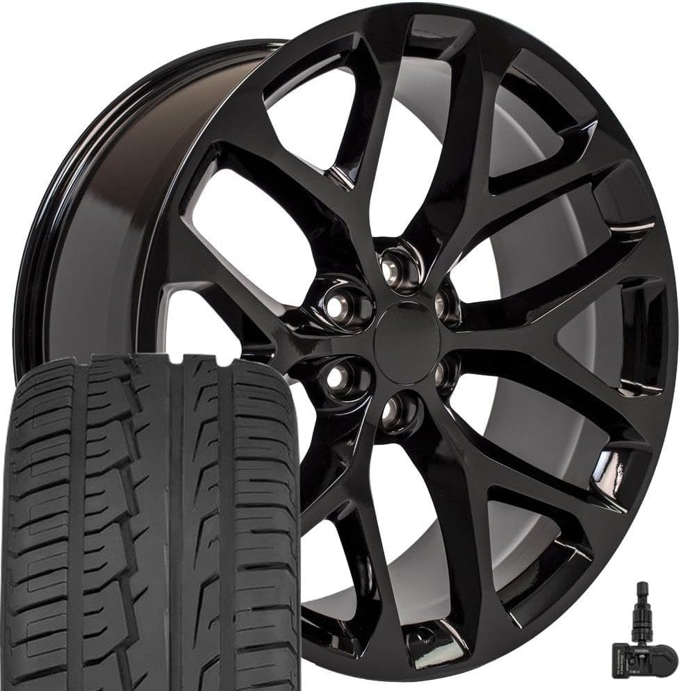 OE Wheels CV98B 24 Inch Rim Fits Silverado 1500 Snowflake Style 6x139.7 24x10 Gloss Black - Hollander 5668 (1)