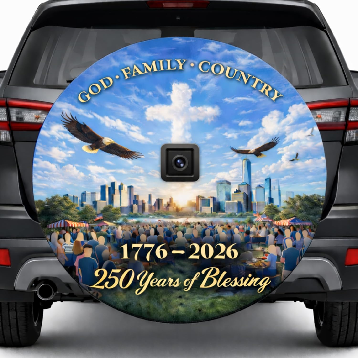 * Product details:Spare Tire Cover:Add colors and some special twists to your car’s rear end with our custom Spare Tire Cover. Other than a decoration accessory for your car, this Spare Tire Cover is also handy to protect your spare tire in ready-to-use condition. Multi-Function: Decorate the car’s exterior and protect your car’s spare tire against sunlight, rain, mud, and other harsh weather conditions. Material: Waterproofing fabric (118gr/m2). The material is light, soft, water & dust-proof, durable, and easy to clean. Drawcord closure: Strong and durable 100% polypropylene drawcord keeps the cover stay firmly and ensures a snug fit. Easy installation: Spare Tire Cover is easy to install and remove. Wrap the cover over the tire and then secure it with a cord lock. Various sizes to fit different car tires (27, 28, 29, 30, 32, and 34 inches in diameter). Spare Tire Cover With Backup Camera Hole: Make your tailgate more colorful and stylish with our Custom Spare Tire Cover. With this version, the spare tire cover comes with a central camera hole in case you have a spare tire-mounted rear camera. Multi-Function: Decorate the car’s exterior and protect your car’s spare tire against sunlight, rain, mud, and other harsh weather conditions. Material: Waterproofing fabric (118gr/m2). The material is light, soft, water & dust-proof, durable, and easy to clean. Drawcord closure: Strong and durable 100% polypropylene drawcord keeps the cover stay firmly and ensures a snug fit. 4-inch hole at the center to leave space for the rear camera to function properly. Easy installation: Spare Tire Cover is easy to install and remove. Wrap the cover over the tire and then secure it with a cord lock. Various sizes to fit different car tires (30, 32, and 34 inches in diameter)