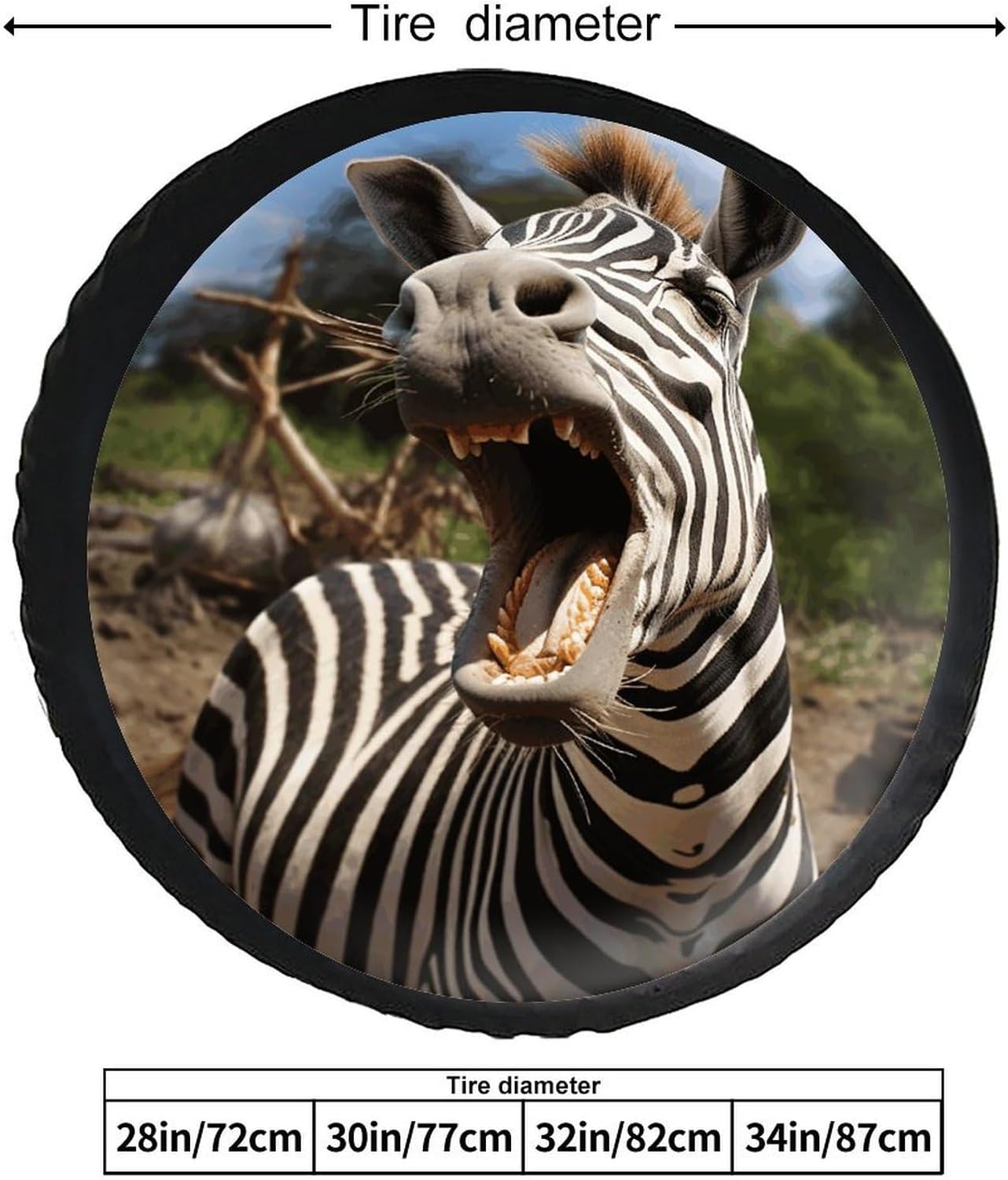 This Funny Zebra printed spare tire cover is made of thickened leather, providing comprehensive and superior protection for your spare tire. It effectively blocks water, snow, sunlight, and dust from damaging the tire. It prevents the tire rubber from cracking, fading, and aging due to prolonged outdoor exposure, thus significantly extending the life of your spare tireThis camper spare tire cover features an adjustable polyester drawstring design. You can freely adjust the tightness of the drawstring to accommodate spare tires of different diameters, ensuring that the spare tire cover fits snugly around the tire and will not slip off or be blown away even in strong windsThis fashionable wheel protector uses advanced UV printing technology. The vivid and clear pattern adheres firmly to the leather surface, remaining bright and vibrant even after months of outdoor use. The leather texture enhances the overall look of your Jeep, RV, SUV, or trailer, protecting the spare tire while adding a personalized touch of style to your vehicleThis Leather tire cover is designed for ultimate convenience, requiring no additional tools for installation and removal. Simply tighten the polyester drawstring in seconds to secure the cover to the spare tire; when you need to use the spare tire, simply release the drawstring to quickly remove it, saving you time and effort in your daily useThis universal tire cover is compatible with 28"-34" spare tires, fitting most popular vehicles including Jeep, trailer, RV, SUV and off-road vehicles. It’s a versatile tire protection accessory for all your outdoor activities—whether you’re going camping, road tripping, or just parking your vehicle outdoors at home, this cover provides reliable protection for your spare tire.