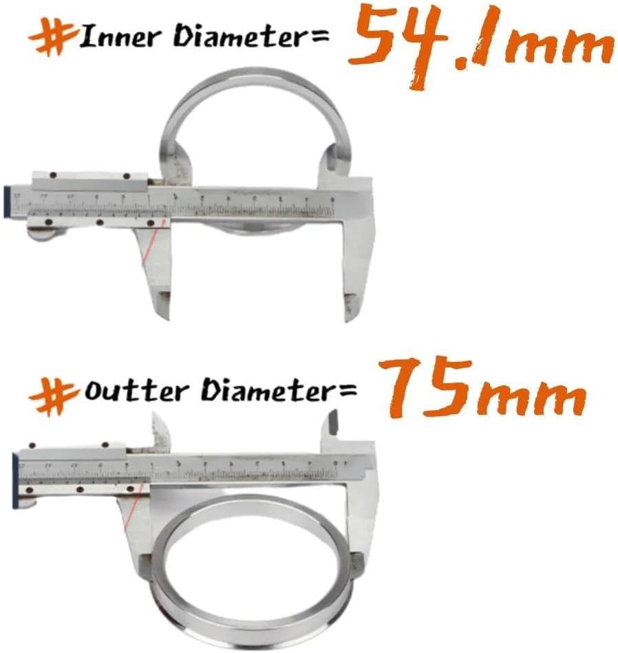 "Applicable to:- Hub Centric Rings 75-54.1 Wheel Center Hub Ring Bore Spacer Aluminum Alloy Auto Accessories. Specifications:Materials:Aluminum alloy 6061-T6.Model Number:75 to 54.1.Description:The wheels are made of Aluminum alloy material, which is tightly sealed, and suitable for various outdoor driving roads.Mounted on the inside of the wheels, the car's wheelbase is widened, stability is increased and handling is improved.Effectively solve the phenomenon of body floating and rolling when driving at high speed and rapid cornering. Package includes: 4×Wheel Hub Centric RingsNotes:1.Do not overload adapters.2. the studs.3.The wheel studs on vehicle must be trimmed if they are not suitable the adapter/spacer.The use of wheel seals that do not match the thickness of the vehicle is not only aesthetically pleasing, but also not aerodynamic and affects vehicle handling. Spacers for car wheels with widening of the track width, providing optimal driving stability and more safety in the curve."