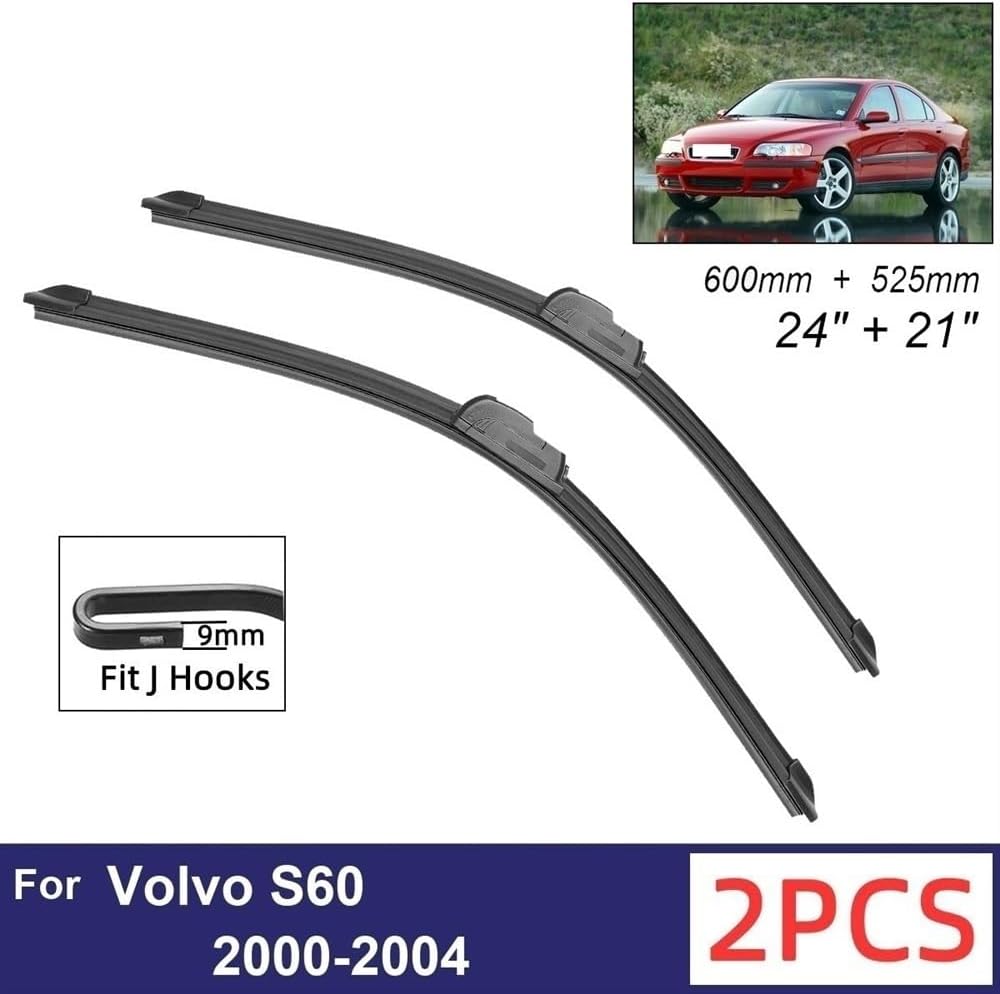 Car Front Wiper Blades Soft Rubber Windshield Windscreen Wipers Auto Parts AccessoriesCompatible with Volvo [ S60 ]Years: 2000-2004 [ 2000 2001 2002 2003 2004 ]Wipers Size: 24"+21" [ 600mm + 525mm ]Note: The wiper blade cannot be connected to the water spray hose.--------------------------------------------------Condition: 100% Brand New(Quality Checked before shipping)Material: AAA Natural Rubber insures maximum performance