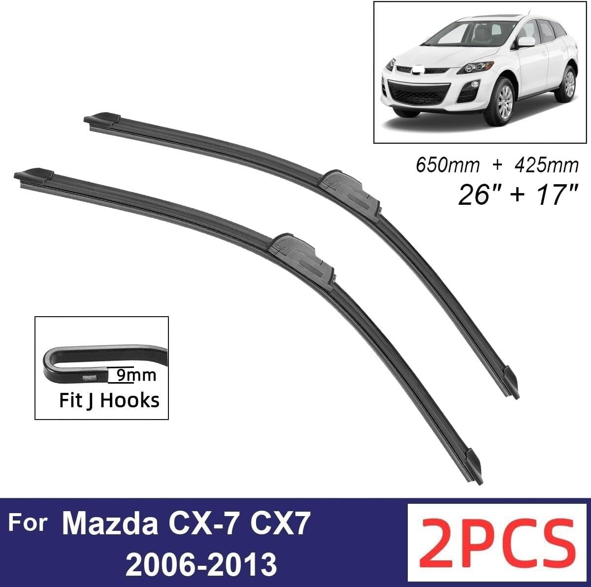 Car Front Wiper Blades Soft Rubber Windshield Windscreen Wipers Auto Parts AccessoriesCompatible with Mazda [ CX-7 CX7 ]Years: 2006-2013 [ 2006 2007 2008 2009 2010 2011 2012 2013 ]Wipers Size: 26"+17" [ 650mm + 425mm ]--------------------------------------------------Condition: 100% Brand New(Quality Checked before shipping)Material: AAA Natural Rubber insures maximum performance
