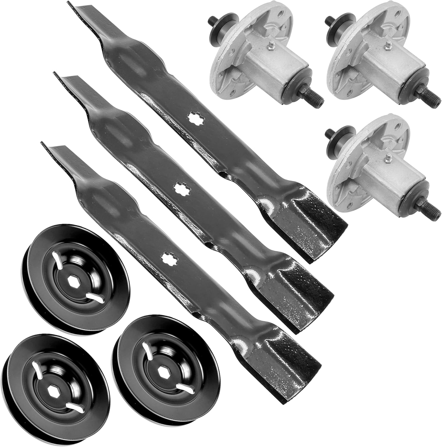 Compatible with John Deere Models:44L777 , Z245 EZtrak Residential Zero Turn Mower - 48"Part Number and Dimensions:3x Spindle Assembly : AM136733 AM143469 AM134292 AM137483Height : 169.4mm - 6.66inOuter Diameter : 126.2mm - 4.96in3x Pulley : M155979, GX20335Width : 20.2mm - 0.79inOuter Diameter : 127.4mm - 5.01in3x Standard Blade : GX21784, AM137757, AM141035, GY20852, B1JD6017Width : 4.3mm - 0.16inHeight : 69.7mm - 2.74inLength : 431.8mm - 17.0inInner Diameter : 23.0mm - 0.90in - 7 Point Start