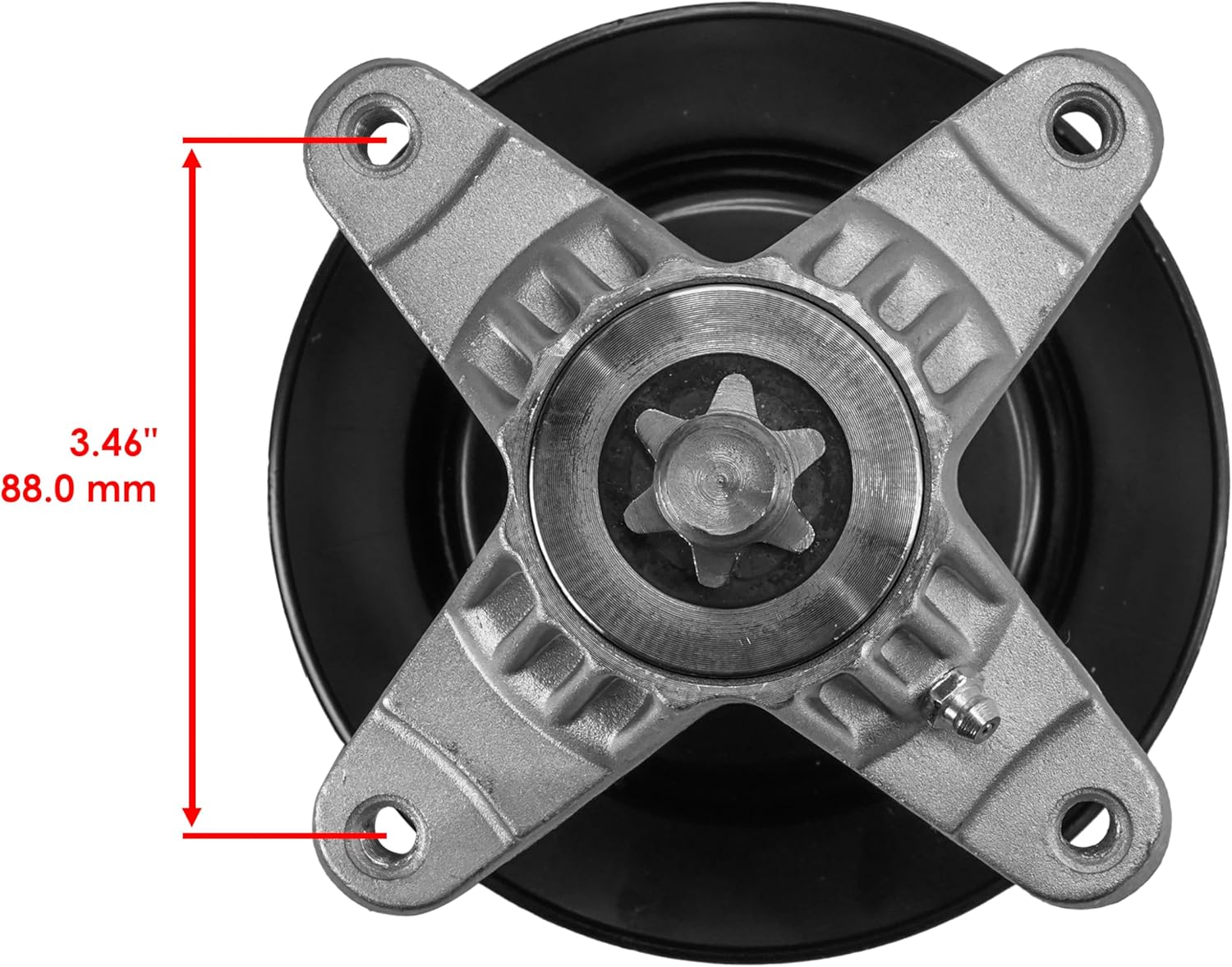 Compatible with Cub Cadet Models :RZT-42Part Numbers : 618-04197, 618-04197A, 618-04197B, 618-0427, 618-0324, 918-0324,918-04197, 918-04197A, 918-04197B, 918-0427, 918-0427A, 918-9427D, 918-0427C, 318-0427C, 490-110-C109, 490-110-C122, 490-110-M115, 742-04087, 742-04126, 7420616, 742-0616, 742-0616A, 942-04087, 942-04126, 942-0616, 942-0616A, 754-04045, 954-04045Measurements : Height : 163mm - 6.41 inOuter Diameter : 140mm - 5.5 inMounting Hole Distance : 88.0mm - 3.46 inLength : 533.4mm - 21.0 inWidth : 4.41mm - 0.17 inThickness : 69.9mm - 2.75 inLength : 2768.6mm - 109 inWidth : 13.31mm - 0.52 inThickness : 8.75mm - 0.34 in