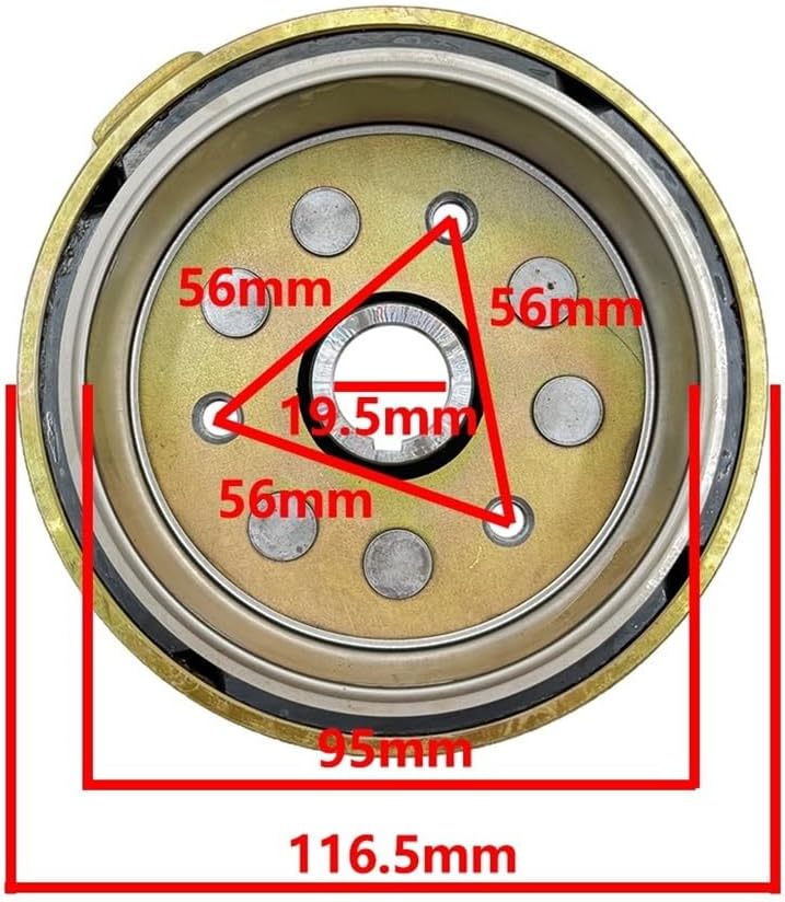 Overall OD including "tab": 121mm [4.76"]Overall OD not including "tab": 119mm [4.7"]ID of magnetic area: 95mm [3.75"]OD of inside hole: 28mm [1.10"]ID of inside hole: 24.9mm [.94"] for :Jianshe 250cc ATVs for :FG-841000-0 JS250ATV-5 FG8410000Item Weight : 1kgPackage include:1pieceMaterial : Aluminum