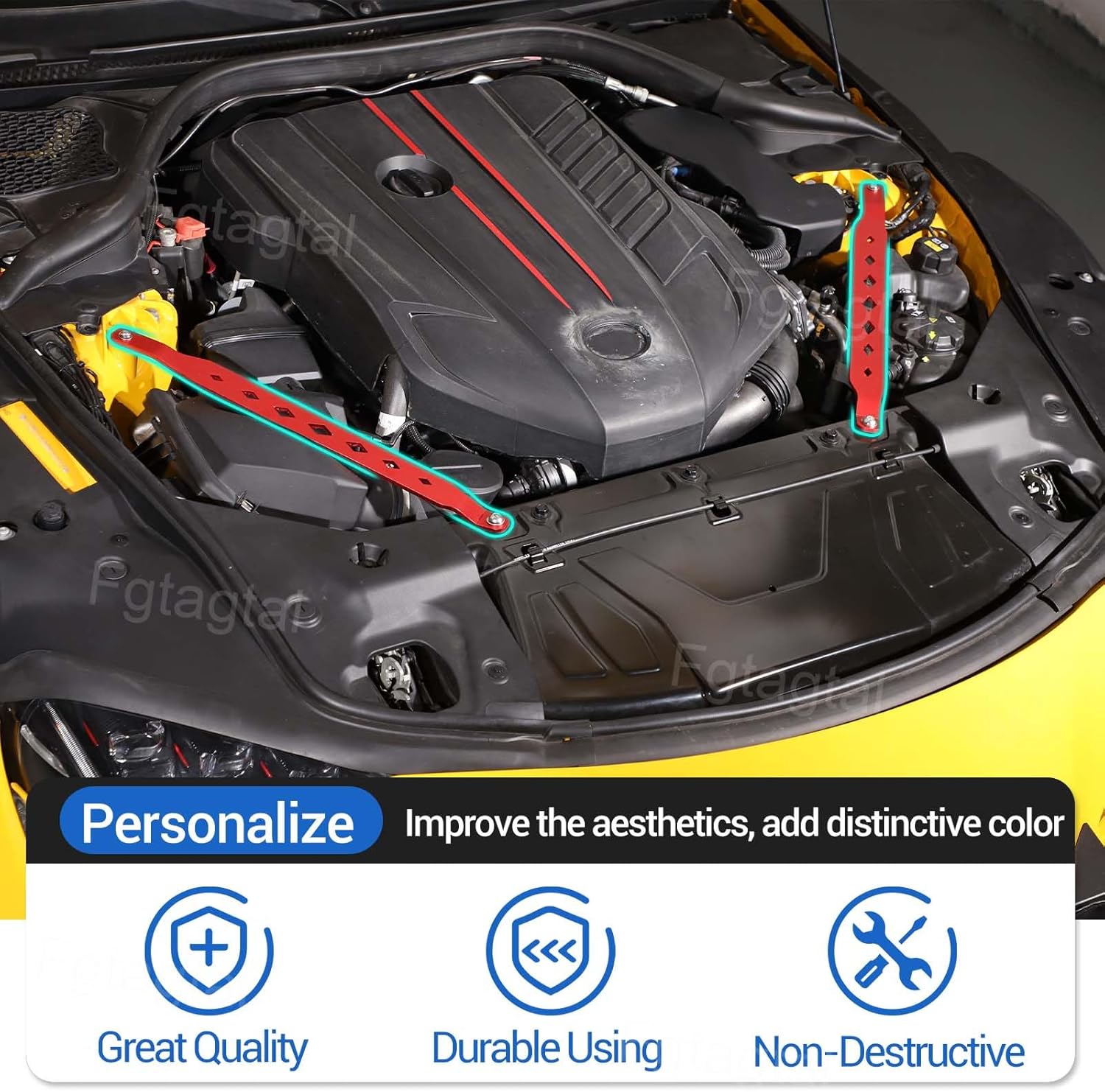 Improve the rigidity of the car body and enhance the stability of the vehicle in cornering Condition: 100% Brand New Product features: Rugged and Durable, Not Easy to Rust, Scratch-resistant, Easy to install Fitment: - Front Tower Strut Bars Compatible with Toyota Supra GR A90 A91 MK5 2019-2026 Material: Aluminum Alloy Easy to use and to operate at affordable prices. Any questions about installation, please feel free to contact us. Package Include: 2Pcs Enhanced Engine Compartment Pull Bar NOTES: Please check whether this item fit for your car model before purchasing
