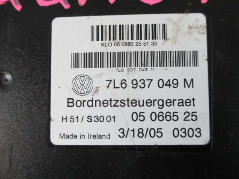Welcome to our Store! Body Control Module BCM Fits 04-07 VW TOUAREG 7L6 937 049 M 7L6937049M Description Donor Vehicle VIN: Model: Year: 0 Mileage: 0 (0 = not available or unknown) Stock Number: QQA670 Store Number: 1 Part Detail Part Grade: A Part Category: U Part Placement: Notes: 7L6937049M This part will fit these makes and models with these options TOUAREG 04-07 Body Control (BCM); (mounted next relay box)