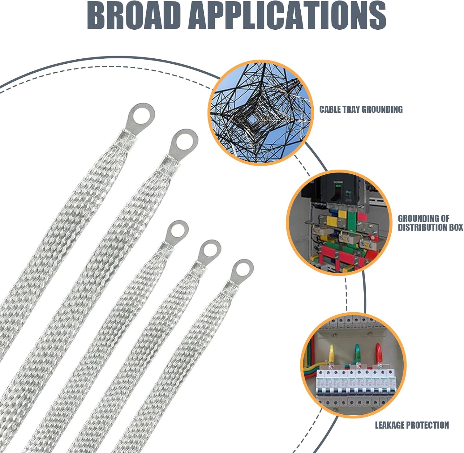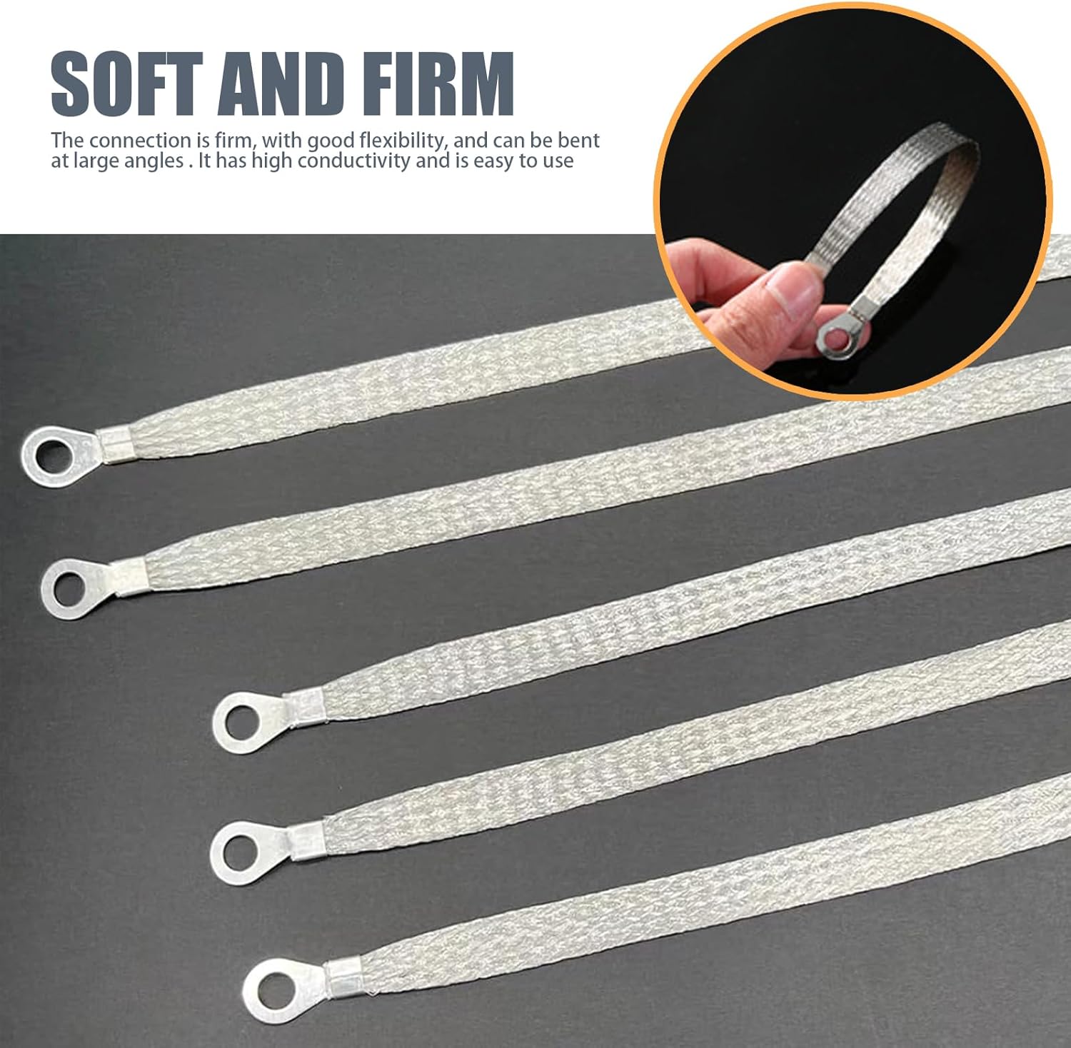 dawfall Pack-5 Car Ground Strap, 10In 13In 220V Metal Flat Braided Vehicle Ground Straps Accessories, Durable Automotive Engine Ignition Coil Grounding Strap Kit, Universal for Truck SUV Car (Silver)