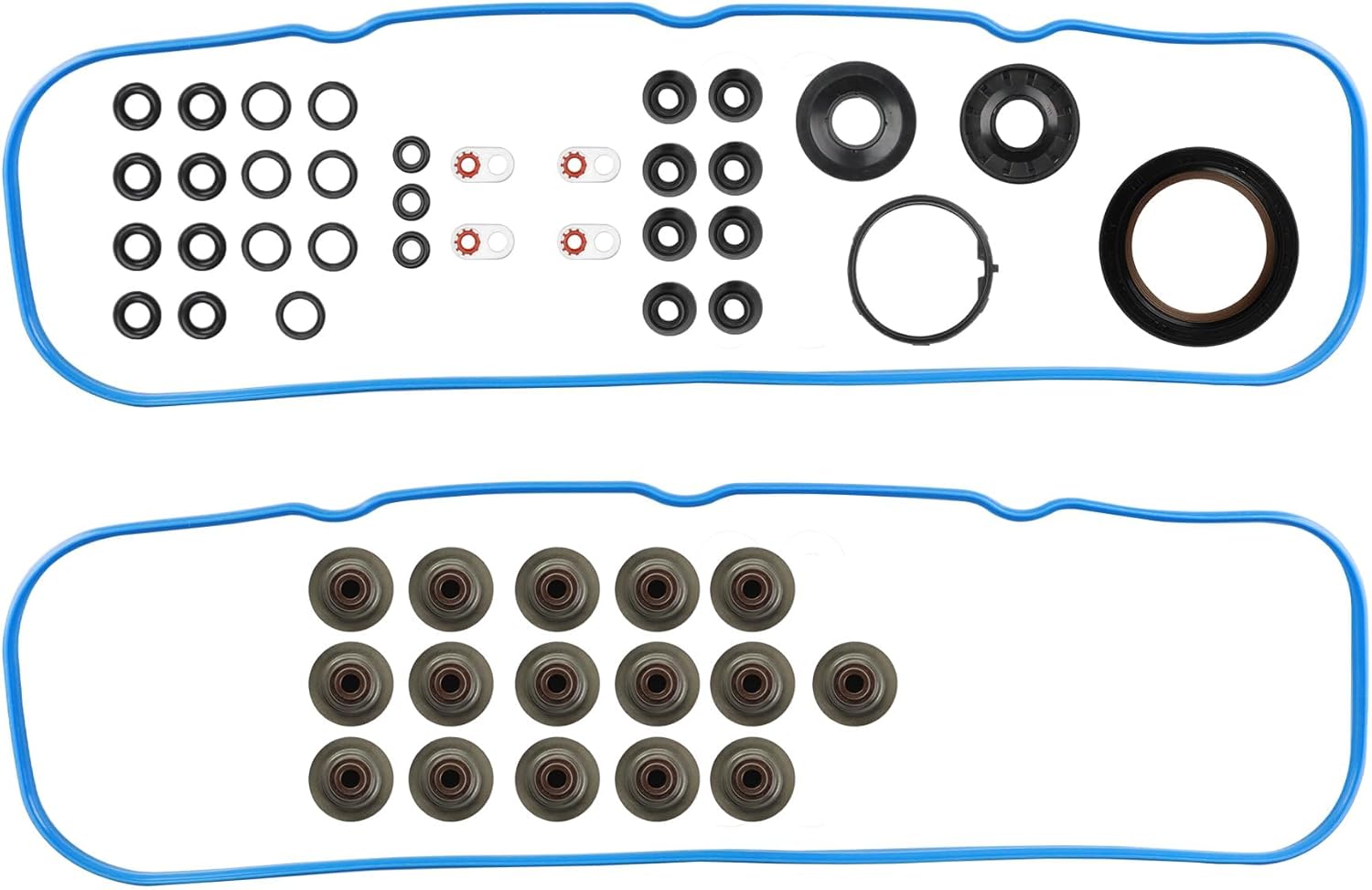 Specification:Type: Engine Cylinder Head Gasket KitFitment Type: Direct ReplacementMaterial: MLS, Graphite, RTV Silicone, High Strength BoltsFeature: High sealing, high pressure, high temperature and shock resistanceWarranty: 1 YearReplace OE Part Number: ES72173Compatibility:2002-2003 Silverado 1500 5.3L2002-2003 Tahoe2002-2003 Suburban 15002002-2003 Sierra 1500 5.3L2002-2003 Avalanche 15002002-2003 Yukon2002-2003 Yukon XL 15002002-2003 Escalade 5.3L2003 Express 1500 5.3L2003 Express 2500 4.8L2003 Trailblazer EXT 5.3L2003 Envoy XL 5.3L2003 Savana 1500 5.3L2003 Savana 2500 4.8L2003 Express 3500 4.8L2003 SSR2003 Savana 3500 4.8L2003 Ascender 5.3LPlease use the year, make, and model in the 'Amazonconfirmedfit' filtering system to confirm compatibilityPackage Include:Displacement gasket*2Cylinder gasket*2Valve cover gasket*1Screw gasket*8Small aluminum gasket*,8,Seal*26Valve chamber gasket*2Oil seal*7Iron ring*1Valve oil seal*16Intake gasket*2Glue*1Paper gasket*2Oil pan gasket*1Interface gasket*1Timing front cover gasket*1Timing rear cover gasket*1Bolt*30
