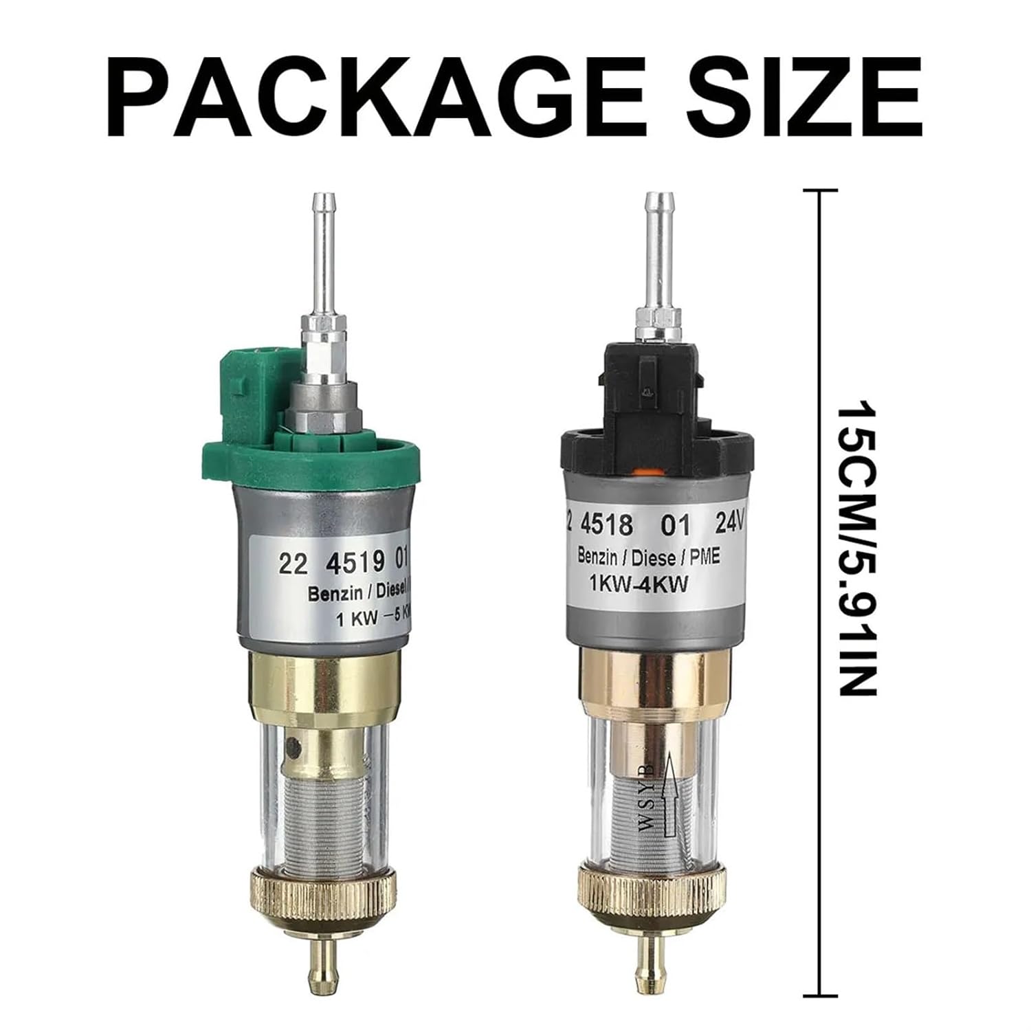 Fuel PumpsFeatures:-Electronic pump, a special intermittent work, so that fuel consumption is small.-Perfect replacement for the existing broken one.-Fine workmanship and good performance.-Easy operation and stable performance, long service life.-Fit for 12V or 24V car electric oil fuel pump air parking heater.-Removable for cleaning, nuts can be unscrewed for cleaningSpecification::Features: removable and washable,With filter elementMaterial: MetalColor: SilverRated Voltage: 12V/24VApplication: 1KW-5KW diesel air heaterPackage Content:1 x Diesel heater pumpNote:1. Please allow 0.5-1 cm differences due to manual measurement.2. Due to the light and screen difference, the item's color may be slightly different from the pictures.