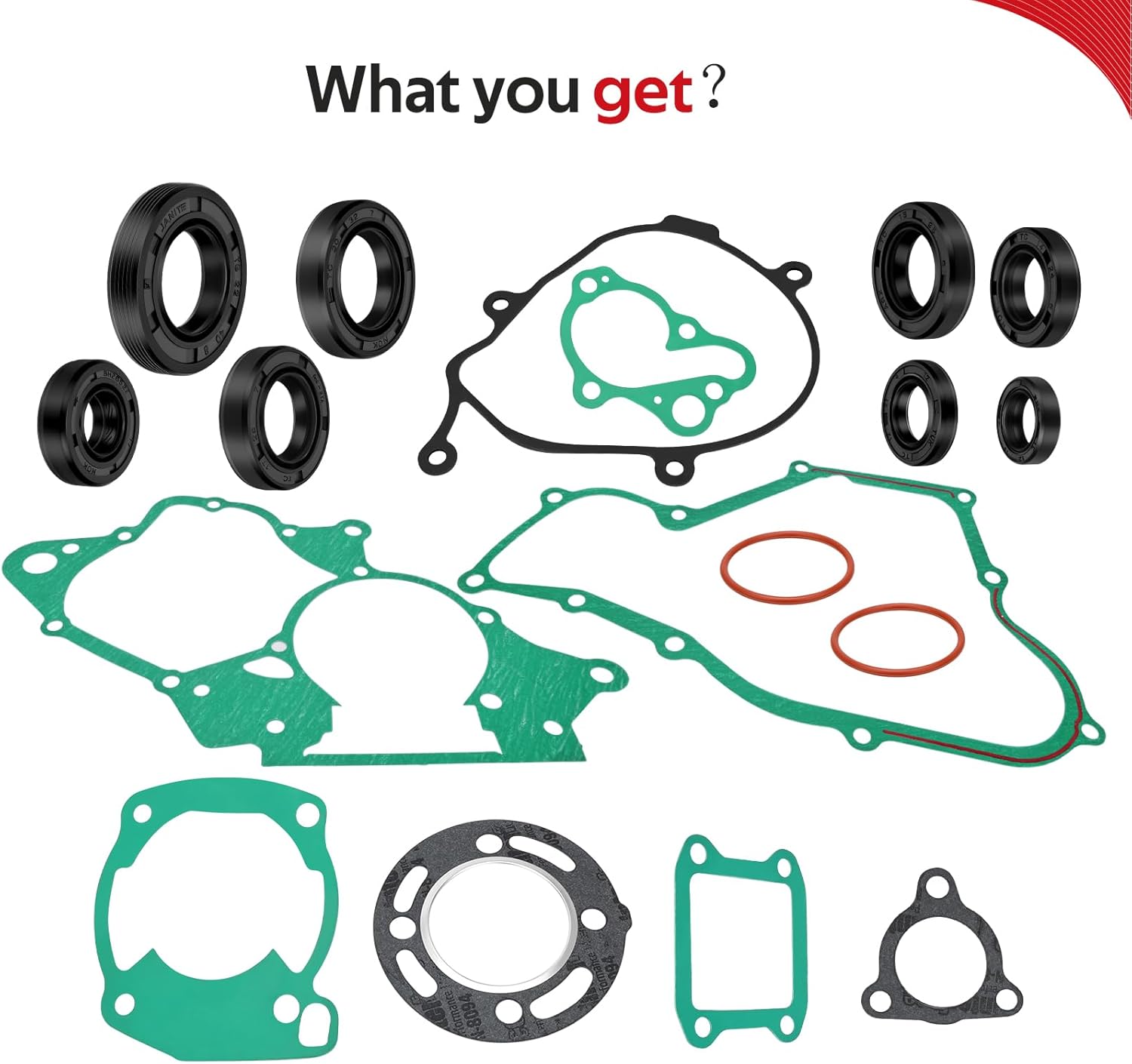 O.E.M# 12191-GC4-308 Package: Cylinder Gasket x1 Cylinder Head Gasket x1 Exhaust Joint Gasket x1 Reed Valve Gasket x1 Special O-Ring x1 Water Pump Cover Gasket x1 Water Pump Seal x1 Left Cover Gasket x1 Transmission Oil Seal (17X28X7) x1 Crankcase Gasket x1 Right Crankcase Gasket x1 Right Crankcase Cover Oil Seal (15X25X6) x1 Left Crankcase Cover Oil Seal (12X18X5) x1 Rear Crankcase Cover Oil Seal (14X24X6)x1 Crankcase Oil Seal(20X32X7)x1 Crankcase Oil Seal(22X40X8)x1 Fit for Honda Motorcycle As Following: 1986-1991 CR80R