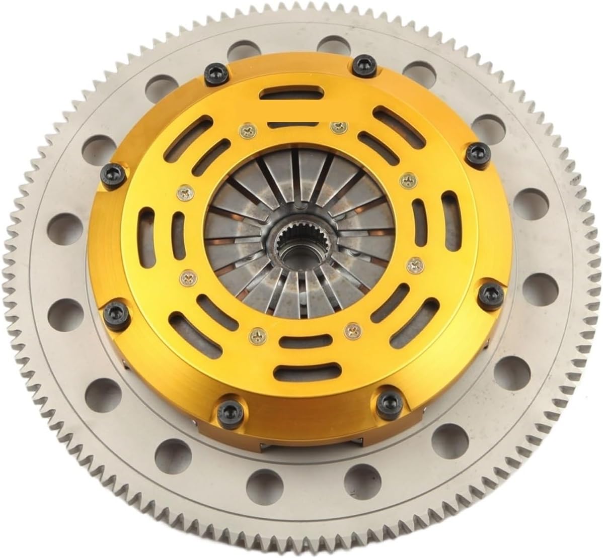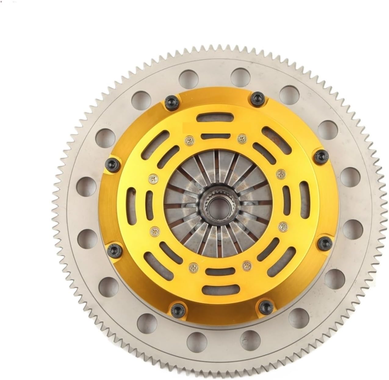 Feature:Clutch Type: PushStyle Release MechanismClutch Disc Size: 7.25" (185mm)ceramic race discsClutch Disc Quantities: 1 (Single plates)Clutch Disc Spline: 185 x 24TClutch Disc Type: Solid(rigid)hubClutch Disc Material: CerametallicPressure Plate Cover: Aircraft aluminum alloyFlywheel Design: One piece medium light weight Billet Chromoly FlywheelFlywheel Weight: Medium light weight (About light weight grade: Extra light weight less than Medium light weight less than Standard light weight)torque capacity up to 530NmRelease Bearing:IncludeAlignment Tool: Not includeInstallation: Must be professionalNot recommend Low horsepower, low-torque carsRecommend race car use onlyRecommend professional installation and professional driving==========Type : Clutch AssemblyOrigin : Mainland ChinaDisc Material : CeramicDisc style : Rigid hubDisc size : 7.25" (185mm)Disc Spline : 185 x 24TClutch Type : Push Style Release mechanisPressure Plate Cover : Aircraft aluRelease bearing : IncludeAlignment tool : Not includeDisc quantities : 1 (Single plates)Flywheel Weight : Medium light weightInstallation : Must be professionalFlywheel Design : One piece Medium light weight Billet ChromolyWelcome to LiYangMaoYiXiaoKe! We are committed to providing you with the highest quality products and exceptional service.Please feel free to browse our products, you can enjoy a safe and convenient shopping experience.If you have any questions or need assistance, please feel free to contact our customer service team.