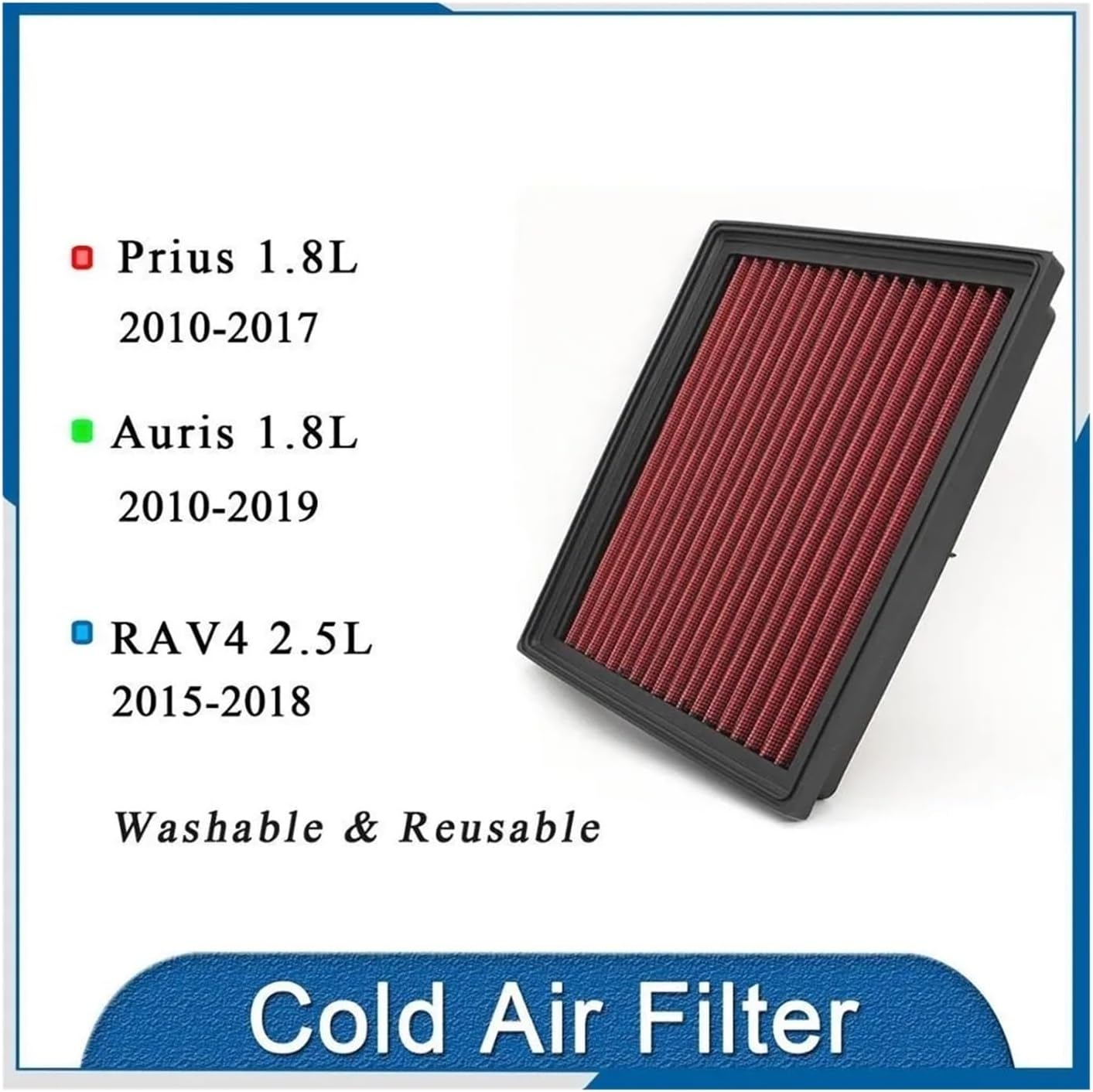 Air Cleaner MountingProduct Name: Replacement Panel Sport Air FilterMaterial: Non-woven Fabric FilterMain Color: Red-BlackWeight: 0.45gAir Filter Size: As PhotoOrigin : Mainland China