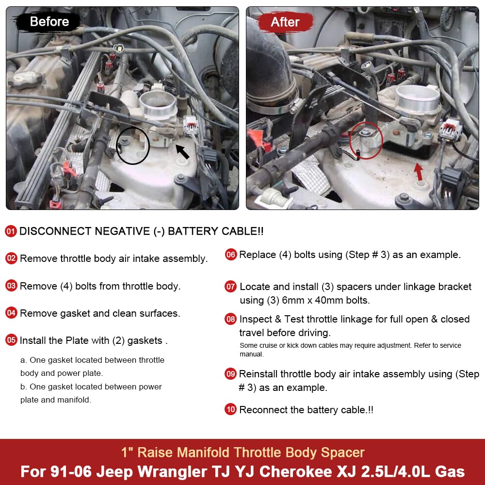 Application:Compatible with Jeep Wrangler (YJ) w/ 2.5L or 4.0L engine Gas 91-95 .Compatible with Jeep Wrangler Unlimited (LJ) 4.0L engine Gas 04-06 .Compatible with Jeep Wrangler (TJ) w/ 2.5L engine Gas 97-02 .Compatible with Jeep Wrangler (TJ) w/ 4.0L engine Gas 97-06 .Compatible with Jeep Cherokee (XJ) w/ 2.5L engine Gas 91-00 .Compatible with Jeep Cherokee (XJ) w/ 4.0L engine Gas 91-01 .Compatible with Jeep Comanche (MJ) w/ 2.5L or 4.0L engine Gas 91-92 .