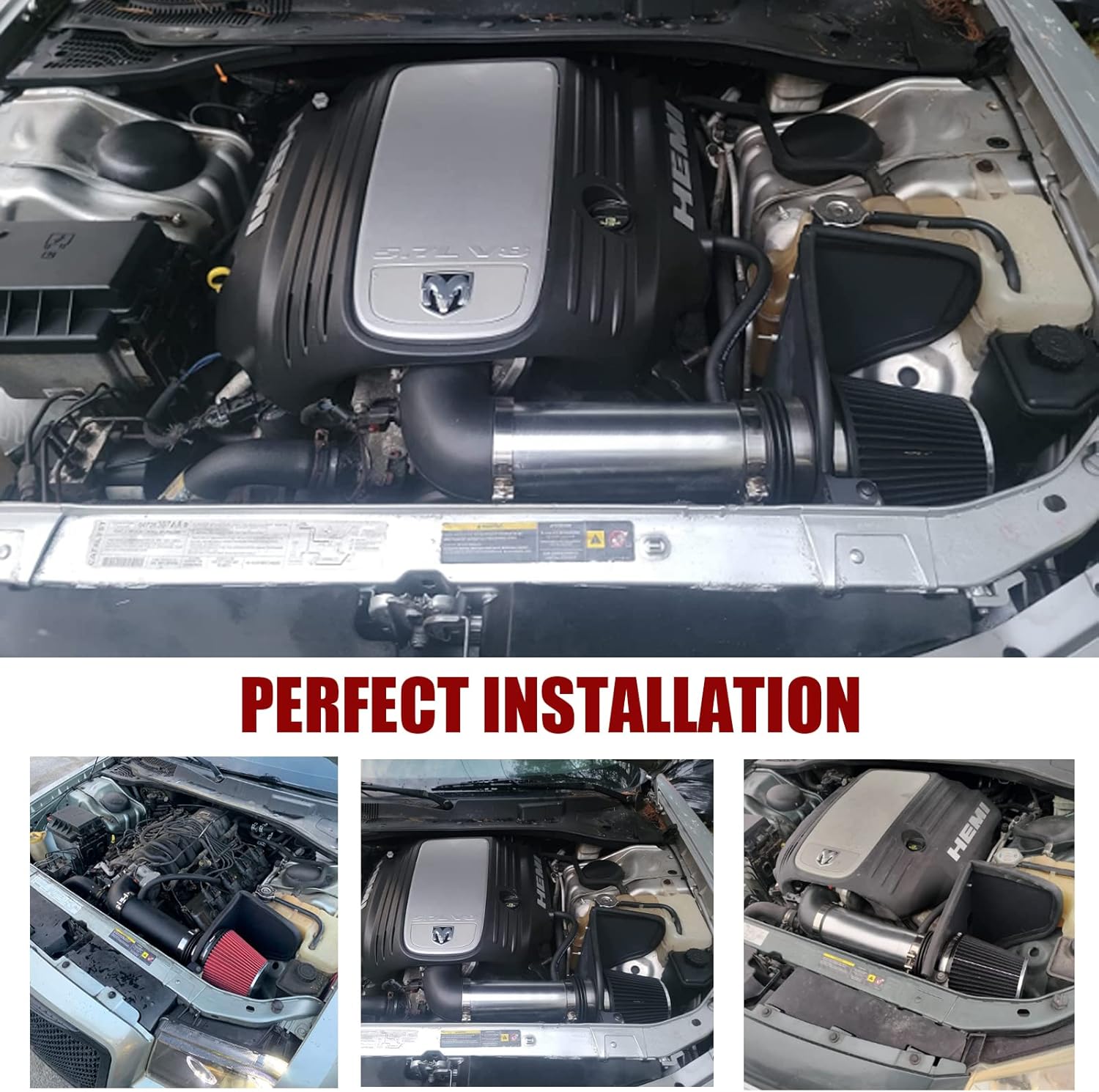 Fitment:2005-2008 Compatible for Dodge Magnum R/T & SRT-8 Hemi 5.7L 6.1L V82006-2010 Compatible for Dodge Charger R/T & SRT-8 Hemi 5.7L 6.1L V82008-2010 Compatible for Dodge Challenger R/T & SRT-8 Hemi 5.7L 6.1L V82005-2010 Compatible for Chrysler 300 C Sedan & SRT-8 Hemi 5.7L 6.1L V8Package Includes: Intake TubeAir FilterFilter ShieldClampAll accessories on the picture are included.