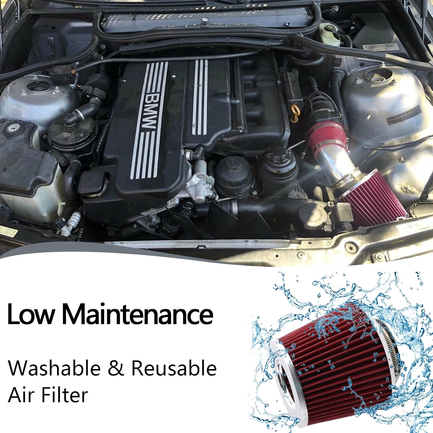 The aluminum intake pipe helps dissipate heat, while thehigh-flow dry air filter ensures cleaner, cooler air reaches your engine—potentially improving horsepower and throttle response. Unlike oiled filters, thisreusable automotive replacement filter requires no oil—simply wash with soap and water for long-lasting use. Easy bolt-on installation includes all necessary hardware, making it a hassle-free. Note: Not compatible with HID/Xenon headlight models.