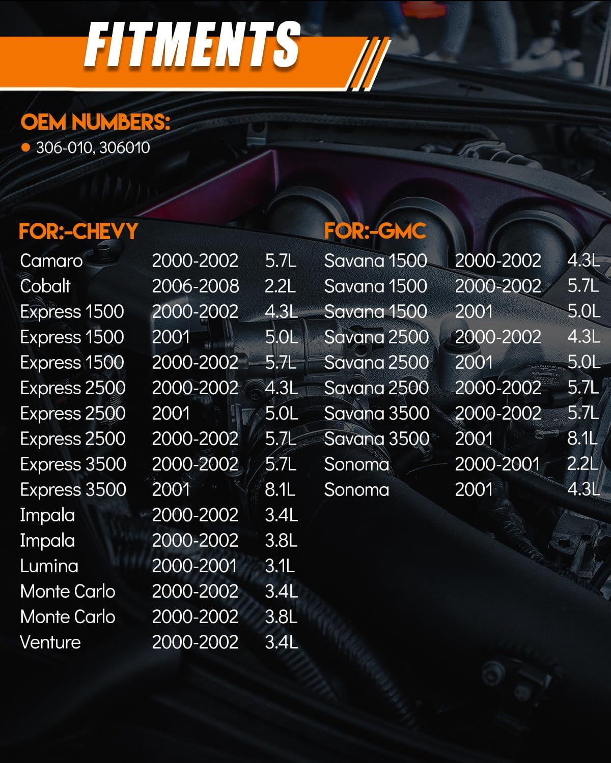 | Included Components | 1*New 306-010 Secondary Air Pump Suit, For:-Chevy Camaro Cobalt Express 1500 Express 2500 Express 3500 Impala Lumina Monte Carlo Venture, For:-GMC Savana 1500 Savana 2500 Savana 3500 Sonoma, For:-Pontiac Aztek Firebird Grand Prix |