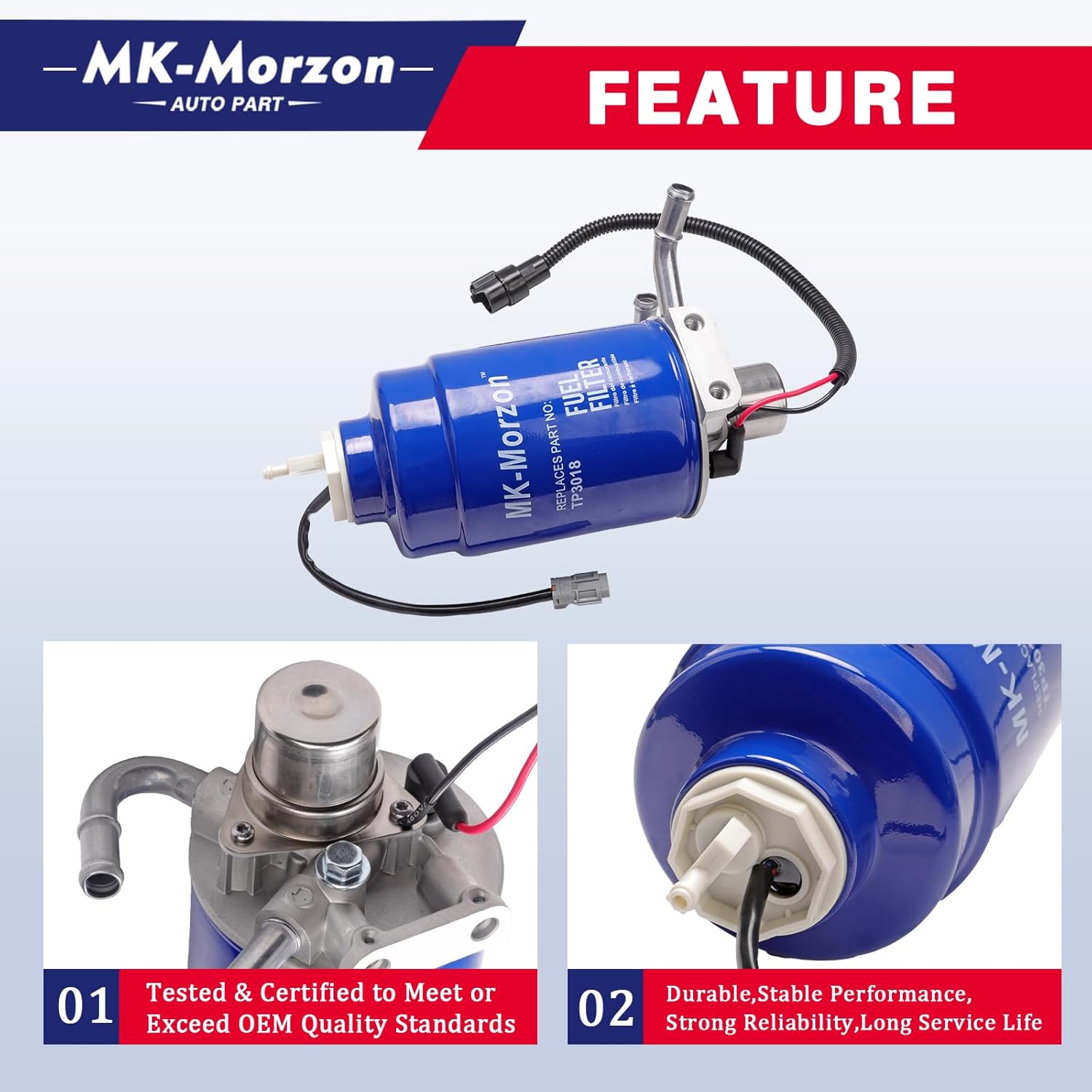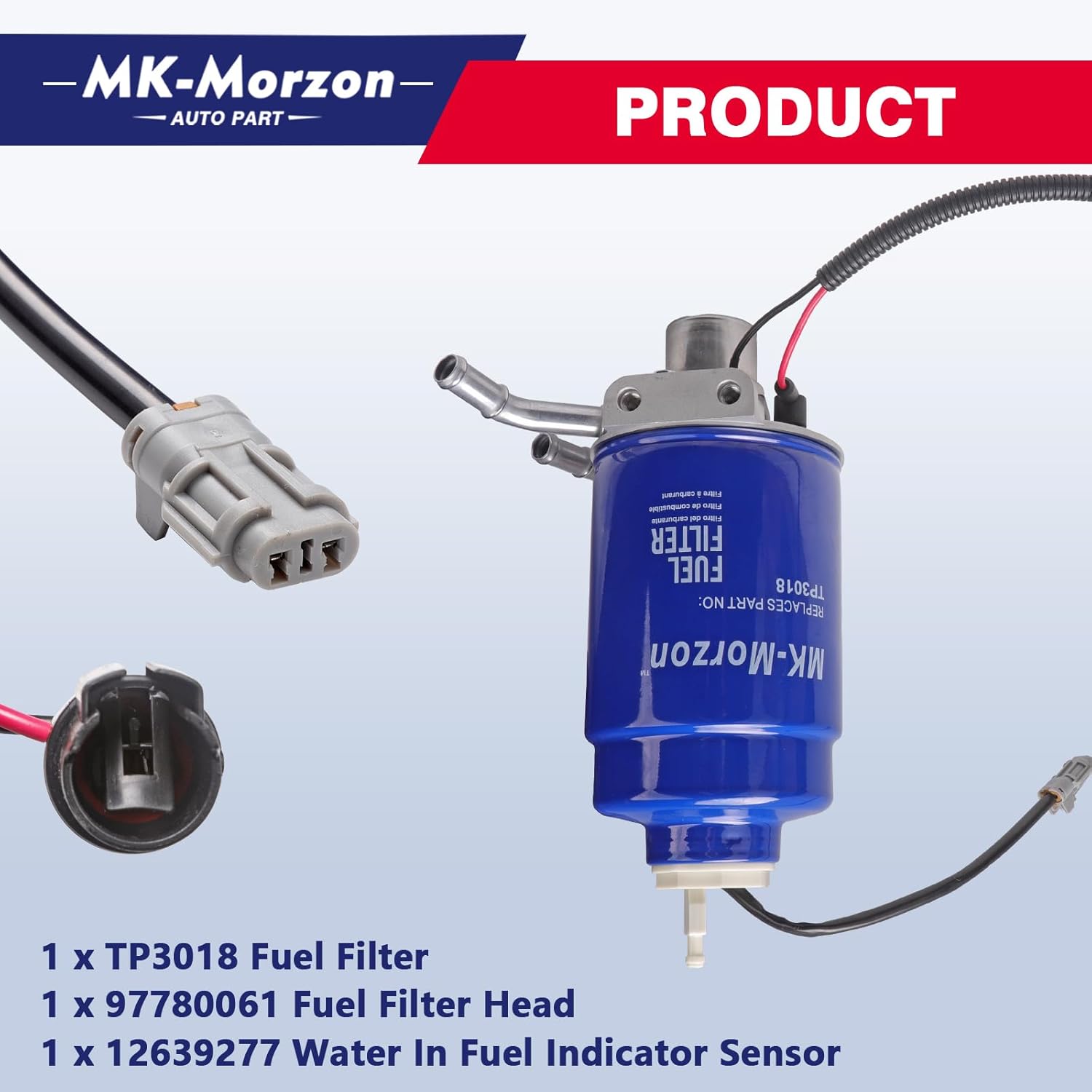 Advantage: 100% Tested Before Leaving the Factory. Tested & Certified to Meet or Exceed OEM Quality Standards. Part Number: 97780061 Fitment : Fit for Chevy : 2001-2004 Silverado 2500 HD 2001-2004 Silverado 3500 Fit for GMC : 2001-2004 Sierra 2500 HD 2001-2004 Sierra 3500 Includes: 1 x 97780061 Fuel Filter Head 1 x TP3018 Fuel Filter 1 x 12639277 Water In Fuel Indicator Sensor Support: 12 Months of Product Service Hassle-Free Return and Refund Policy.