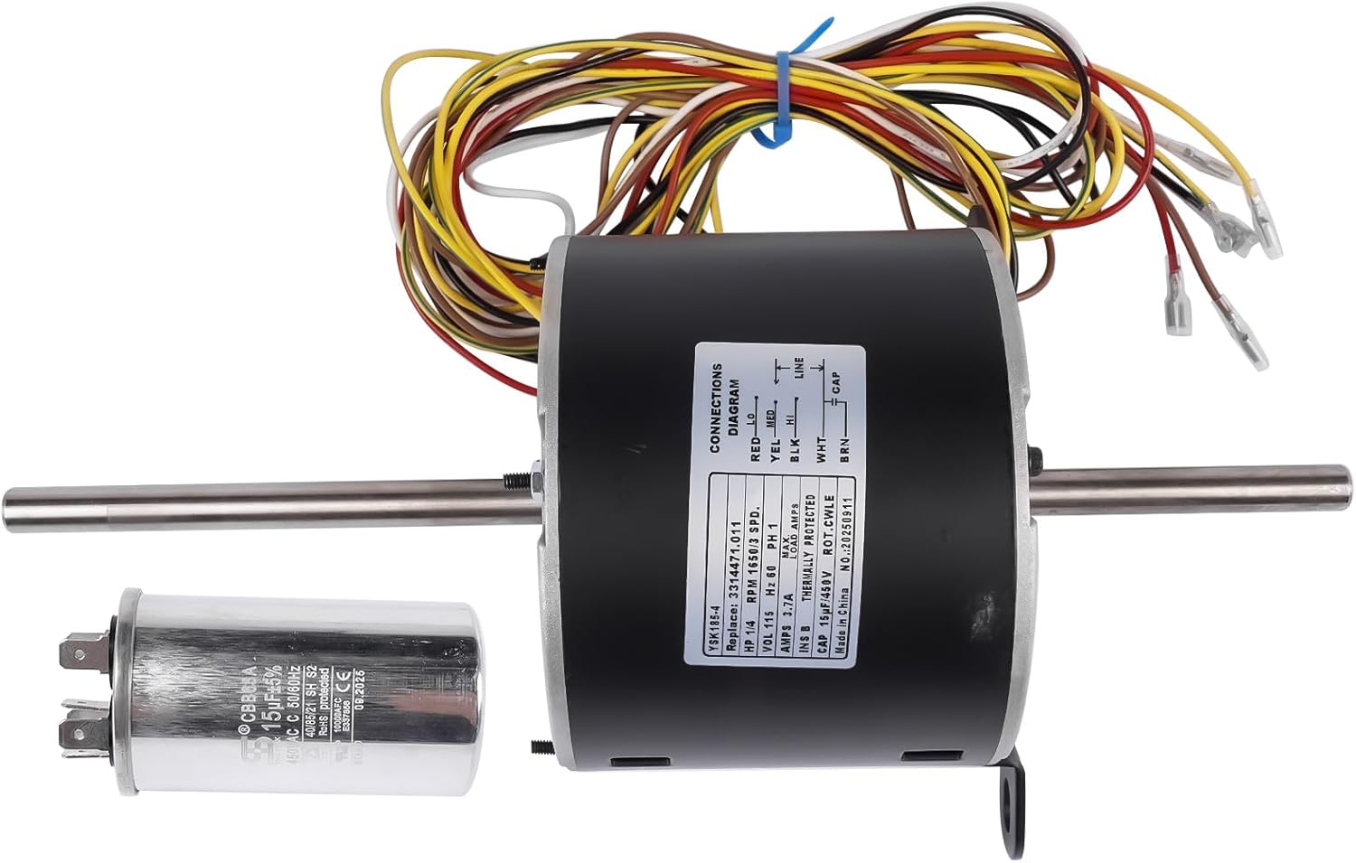 1. Reference OEM Number:3314471.011, 3314471.013F48AF67A61, F48AE48A612. Compatible Vehicle Models:Replacement for Penguin II models 3314471.011: 641815, 641816, 641835, 641915, 641916, 641935, 651815, 651816 and 651916Replacement for Genteq F48AE48A61Voltage: 115V ACFrequency: 60 HZAmps: 2.9Horse Power: 1/4RPM: 1650Speeds: 3