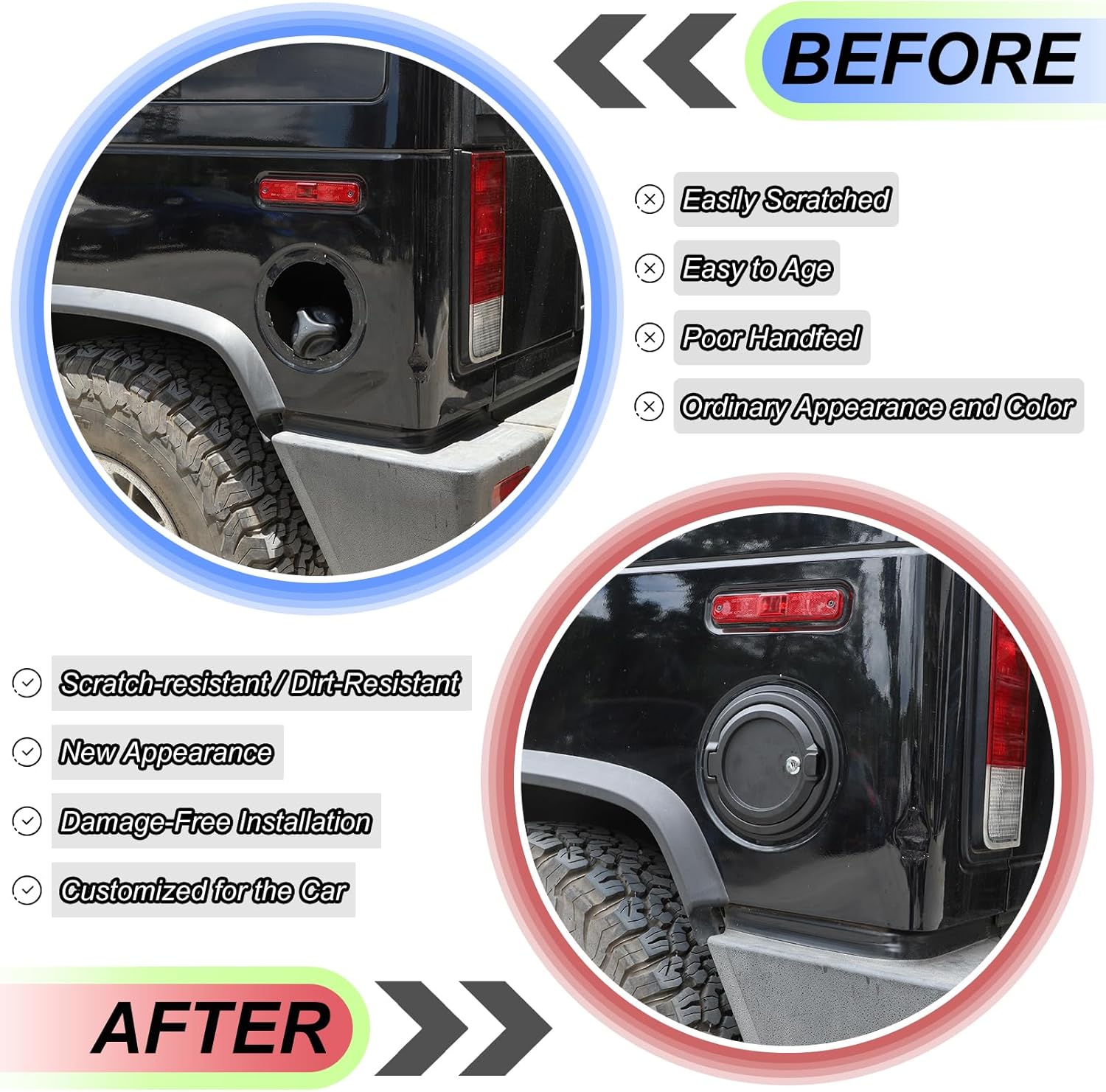 Specification:Material: Aluminum alloyColor: Black Package weight: 770 g Fitment : Fit for Hummer H2 2003-2009Features:-- 100% Brand New In Box-- Slim and Perfect Fit.-- Easy installation and easy cleaning.Note:1.We provide clear pictures, measurements where possible. Please check as much as possible to make sure the item is the one that you need.2.Please allow 0.5-1 inch difference due to manual measurement.(1inch=2.54cm)3.The color of the actual items may slightly different from the listing images due to different computer screen, thanks for your understanding.Package Included:1 x Locking gas tank door with Box Package