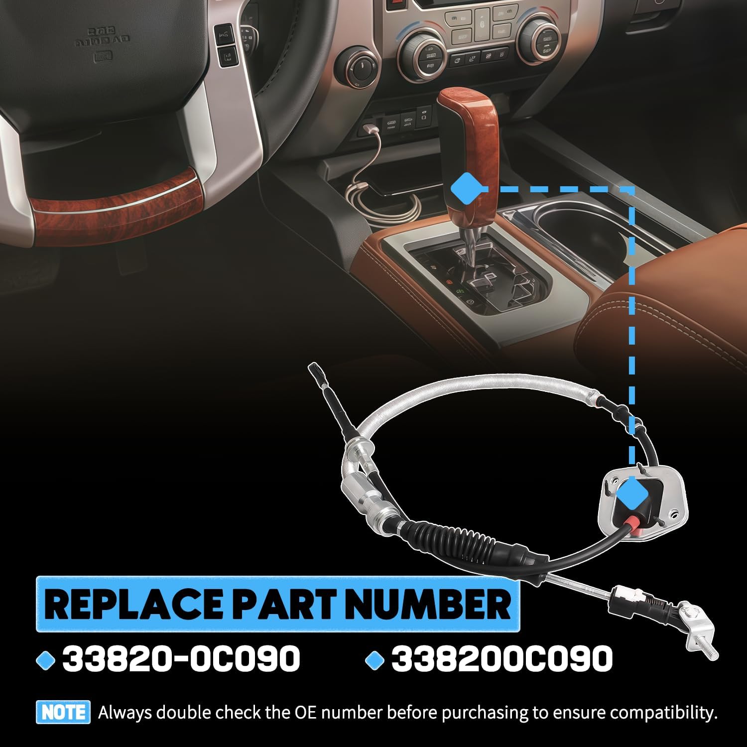 Part Name: Automatic Transmission Gear Shift CableBrand: PasanguiLocation: Center Console AreaReplace Part Number: 33820-0C090Product Material: MetalColor: BlackWarranty: 1 YearFitment: Fit For Toyota Sequoia 5.7L V8 2008Fit For Toyota Sequoia 5.7L V8 2009Fit For Toyota Sequoia 5.7L V8 2010Fit For Toyota Sequoia 5.7L V8 2011Fit For Toyota Sequoia 5.7L V8 2012Fit For Toyota Sequoia 5.7L V8 2013Fit For Toyota Sequoia 5.7L V8 2014Fit For Toyota Sequoia 5.7L V8 2015Fit For Toyota Sequoia 5.7L V8 2016Fit For Toyota Sequoia 5.7L V8 2017Fit For Toyota Sequoia 5.7L V8 2018Fit For Toyota Sequoia 5.7L V8 2019Fit For Toyota Sequoia 5.7L V8 2020Fit For Toyota Sequoia 5.7L V8 2021Fit For Toyota Sequoia 5.7L V8 2022Fitment: Fit For Toyota Tundra 5.7L V8 2009Fit For Toyota Tundra 5.7L V8 2010Fit For Toyota Tundra 5.7L V8 2011Fit For Toyota Tundra 5.7L V8 2012Fit For Toyota Tundra 5.7L V8 2013Fit For Toyota Tundra 5.7L V8 2014Fit For Toyota Tundra 5.7L V8 2015Fit For Toyota Tundra 5.7L V8 2016Fit For Toyota Tundra 5.7L V8 2017Fit For Toyota Tundra 5.7L V8 2018Fit For Toyota Tundra 5.7L V8 2019Fit For Toyota Tundra 5.7L V8 2020Fit For Toyota Tundra 5.7L V8 2021Advantage:Enhanced Durability for Everyday Use: Made with high-quality materials that resist wear and corrosion, this shift cable is designed to handle the demands of daily driving, offering long-lasting performance even in tough conditionsSmooth Shifting Experience: The cable's low-friction design ensures smooth engagement between gears, reducing the effort required for shifting and enhancing the overall driving comfortProtection Against Environmental Damage: The protective outer layer shields the cable from Small particles, moisture, and engine heat, preserving its function and extending its lifespan by preventing external wear caused by heat Resistance for Tough Conditions: Built to withstand the high temperatures commonly found in engine bays, this shift cable maintains smooth operation without degrading, even after prolonged exposure to heatImproved Shift Response: The robust material and design of this shift cable provide a more direct and responsive connection between the shift lever and transmission, improving overall driving experienceConsistent Performance Over Time: Built for longevity, this shift cable delivers smooth and consistent performance throughout its service life