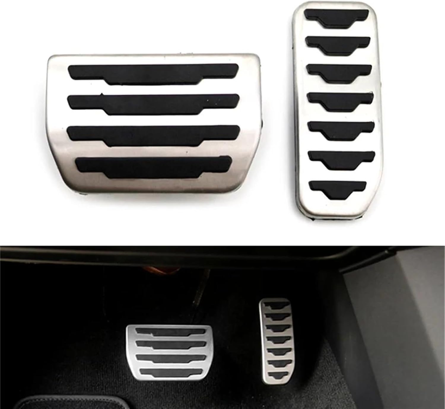 "It can effectively prevent sliding and avoid accidental acceleration or deceleration.2 Pcs/Set Car Foot Pad Brake Gas Pedals Pad Anti-slip Cover For Range Rover For Evoque 2012 2013 2014 2015 2016 2017 2018 2019Product Name: Car Accelerator Brake Pedal CoverMaterial: Stainless Steel+RubberColor: Black+SilverFitment Type: Direct ReplacementPacking Included: 1 x Accelerator Pedal Cover1 x Brake Pedal CoverFeatures: Simple installation, no drilling or welding required.Made of durable metal and rubber, nonslip, wear resistant, and not easy to deform or rupture.Enhance the style and appearance of your car pedal, surface protruding rubber design provides better friction to effectively prevent slipping during driving.When you drive, with the help of pedal covers, accelerating and braking will be more steady and effortless.The surface of the pedal cover has a protruding rubber strip, which improves the area and friction between the shoe and the pedal, Added comfort .Improve driving immediacy, such as rapid braking in emergency braking, to ensure driving safety."