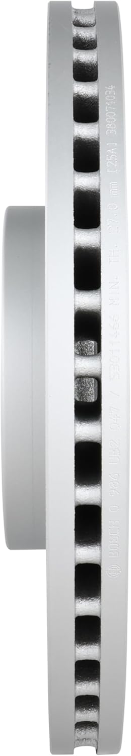 Bosch QuietCast is a name you can depend on, with minimum tolerance levels and innovative materials that ensure the very highest quality and brake judder, noise, vibration, and harshness free operation. All QuietCast rotors are factory mill precision balanced, which disperses the weight evenly, and allows for smooth, safe stops with no pedal pulsation. Performance is ensured by OEM style vane configurations that provide more efficient heat dissipation, reduced vibration for quieter operation, and extended rotor life. Aluminum/Zinc coating protection prevents rust and corrosion, extending the life of the rotor while providing a clean look for today's open wheels. OEM style ABS tone rings (on required applications) provide trouble free operation of Antilock Brake and Traction Control systems. Every Bosch QuietCast rotor features an engraved discard thickness, that lets you know when the rotor has reached its useful life, and an “on-the-part” Bosch brand name, so you can be confident you are receiving an authentic Bosch product.