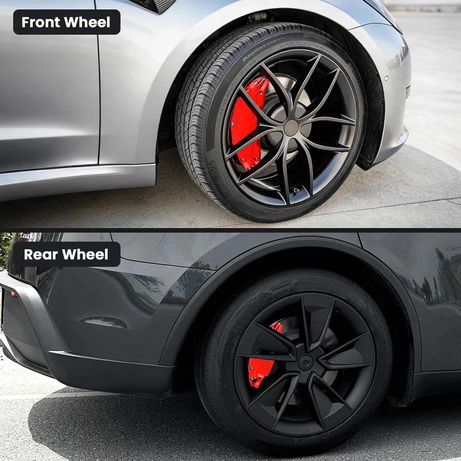 Red Brake Caliper Covers Compatible with Tesla Model Y Juniper 2025-2026, 19 20 inch Front and Rear Brake Wheel Hub Brake Caliper Covers 4 Pcs for Model Y Juniper Accessories