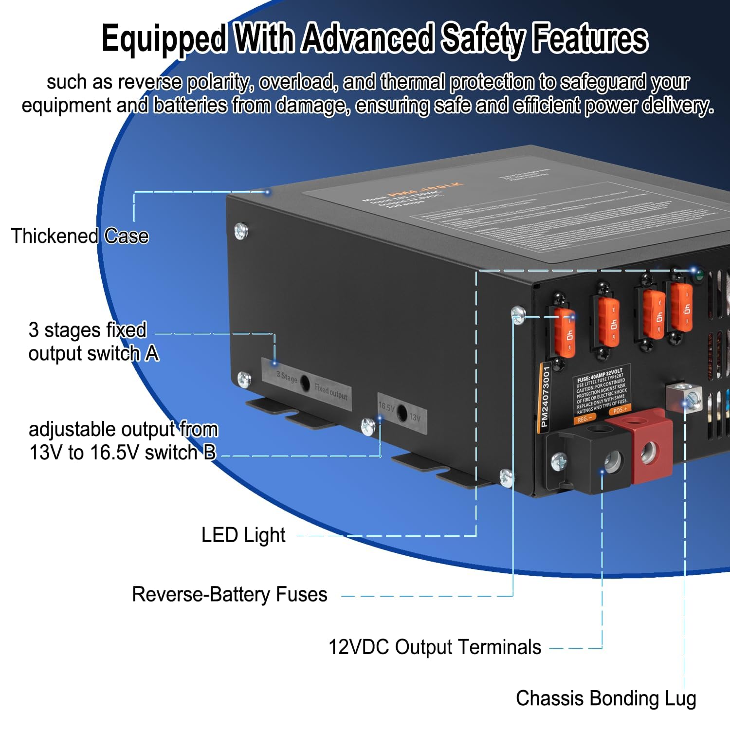 The 120A RV Power Converter is used to convert AC power to DC power, converts 110V-120V AC into a stable and reliable 12V-16.5V DC power source, ideal for charging batteries or powering 12V devices. Also, it has fully flexibility adjustable output, adjustable within a wide range from 13V to 16.5V.