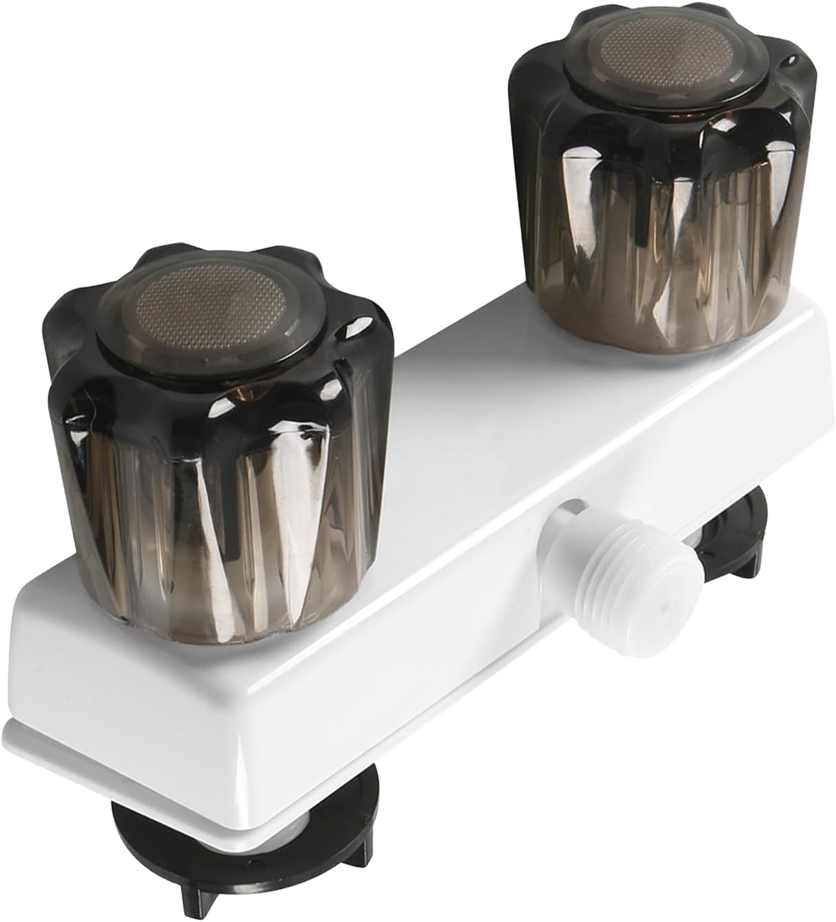 Eagles RV Shower Head with Hose kit - Lead-free ABS Material - RV Accessories for RV, camper, van, travel trailer, motorhome and boat - White Connection Size: Standard G 1/2", fits any RV shower faucet and wall elbow Water Flow: Max 2.5 GPM Features: 1. Matt White RV camper shower heads can fit most RV bathroom 2. A water saving trickle valve switch (not an on/off switch) to save on water flow when needed. 3. Straight and even pressure provides good water flow for better showers. 4. Lightweight handheld shower head and hose kit that adds no extra weight to the RV. 5. This RV Shower Head with Hose is perfect for replacing your current standard sized model. ABS Material to resist corrosion and tarnishing. 6. The rv shower hose and head was made with a recreational vehicle’s limited space in mind, so no plumber is needed! 7. This rv replacement shower head has been designed with a comfortable-to-grip wand base. Specification: RV Shower Hose And Head: - Color: White - Theme : Simple - Function : 1F,Pause Function - Mounting Type : Handheld - Shower Head Type : Handheld Shower Head - 100% Factory Pressure Tested - Premium Quality : ABS Material Body - Water Type : Full Spray - Valve Core Material : POM RV Shower Faucet: - Color: White Base - Teal Acrylic Knob - Handle Style: Knob - Premium Quality: ABS Alloy - Hole: 2-Hole - 4” center to center installation - Diameter of installation hole: 35±0.5 mm - Thread Diameter: 20.5mm/0.811’’ What's in the box? 4" RV shower faucet valve diverter x 1 Handheld RV shower head x 1 59" PVC Shower Hose x 1 Adhesive Shower Bracket x 1 Hose clamp x 1 Extra Washers x 2 Instruction manual x 1 ☎ Eagles - Your Professional Tool House Worry-free. 18-Month warranty and friendly customer service