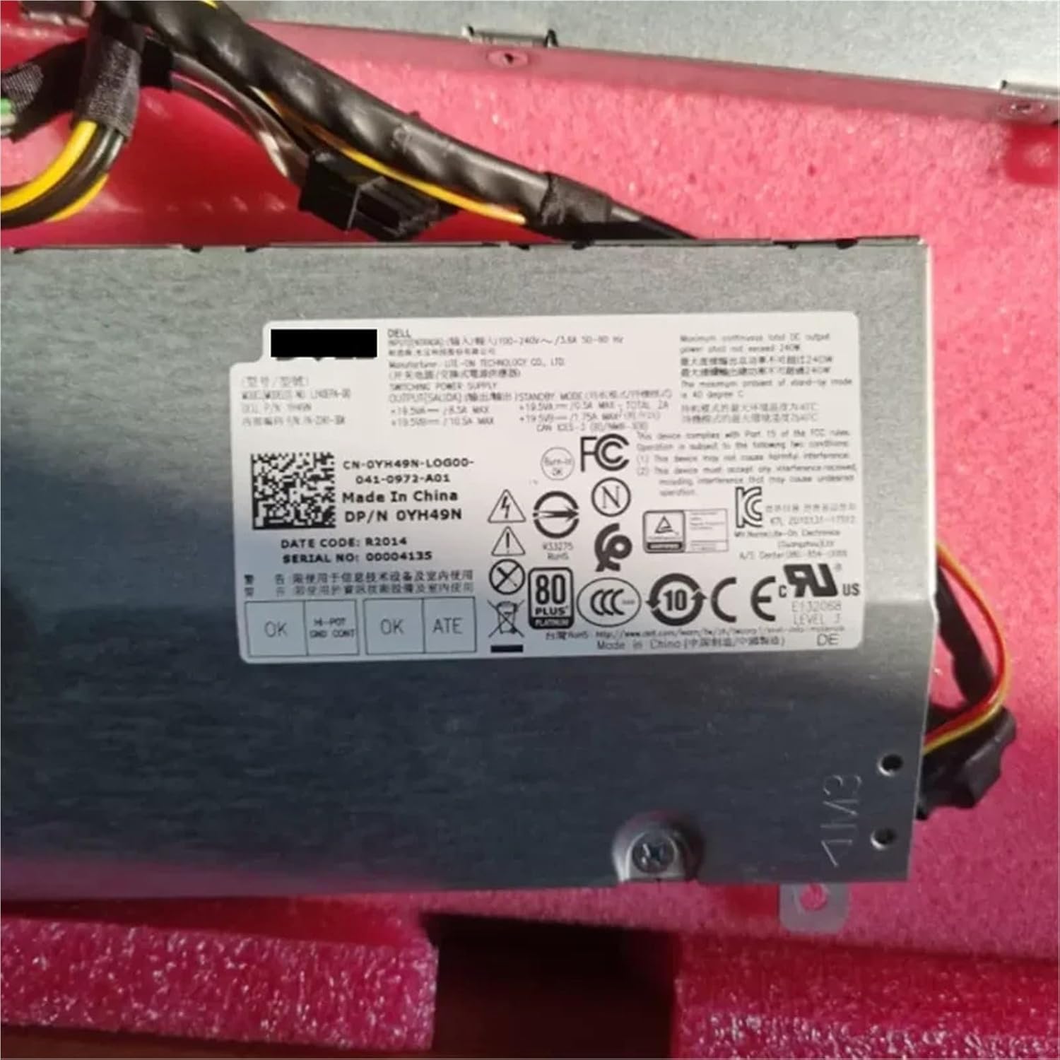 AdaptersM65JRPart Number68C30, 451FP, YH49N, M65JRModel NumberL240EPA-00, D240EPA-00Max Power240WInput100-240V~/3.6A, 50-60HzOutput+19.5VA--0.5A+19.5VB---10.5AConnectors1x 16Pin ATX power connector==========Hign-concerned Chemical : NoneFans : 1PFC Type : ActiveApplication : DesktopModel Number : L240EPA-00, D240EPA-00Input Voltage : 100-240VModular : Non-ModularOutput Voltage : +19.5VMax Output Power : 240W