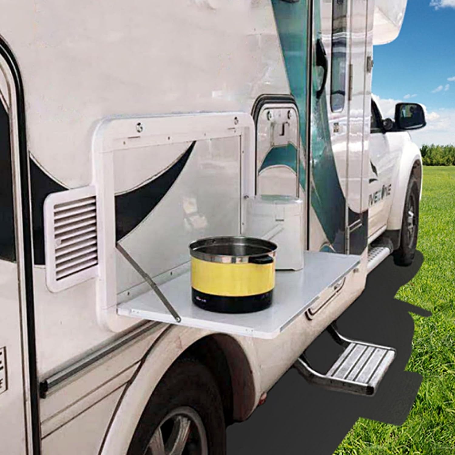 HOLGVE Make Travel more Portable RV folding table is fixed to the wall securely, can be easily connected to outside/internal of the vehicle. Create a convenient and comfortable office or dining environment outdoorsWide Compatibility: The simple appearance and pure white color make this modern-style product applicable to various styles of campers and RVsRounded Corners: They can give the product a soft and cozy appearance while protecting your hands from scratchesProduct Name: External Dining Table for RV, Foldable RV table, RV folding table, RV Caravan Folding, rv dinette table, Campervan Outside Picnic tableColor: WhiteShape: RectangularProcess: SprayingMaterial: Aluminum AlloyMount Type: RV Wall-mountedAssembly Required: NoMax. Load Bearing Capacity: Approx. 25kg/55.11lbsProduct Size: 80*45cm/31.49*17.71inWeight: 5.5kg/12.12lbsPackage IncludedFoldable RVs TableKeysOther Needed AccessoriesNotesPlease note that due to different monitors, there may be slight color difference, please understandManual measurement, there will be 1-2cm error, please understandEasy care: For daily cleaning, wipe the surface with a clean, soft cloth