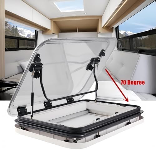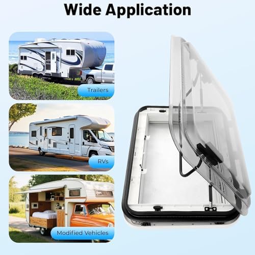 Upgrade your RV experience with our RV Roof Vent Kit featuring a built-in LED light. Designed for caravans and campers, this skylight roof hatch is perfect for enhancing ventilation while adding a modern touch to your vehicle. **Key Features:** - **Easy Installation:** Quick and straightforward setup means you can enjoy the benefits of fresh air and natural light in no time. - **Durable Design:** Constructed with a robust aluminum alloy top and ABS inner frame, the double-layer hollow acrylic cover is anti-UV, ensuring longevity and resistance against harsh weather conditions. - **Convenient Operation:** The gas lift mechanism allows for smooth opening and closing, making it user-friendly for everyone. - **Integrated Protection:** Equipped with an anti-insect net and sunshade, this hatch provides comfort and safety during your travels. **Dimensions Available:** 1. **500x500mm:** Ideal for smaller spaces (Cut Hole Size: 19.7x19.7 inches) 2. **700x500mm:** Versatile option for medium-sized installations (Cut Hole Size: 27.6x19.7 inches) 3. **800x500mm:** Perfect for larger openings (Cut Hole Size: 31.5x19.7 inches) **Specifications:** - Opening Angle: 70 degrees for optimal airflow - Mounting Type: Clamp mounting for secure installation - Standard skylight adapts to wall thickness of 30-60mm **Package Includes:** - 1 x RV Caravan Roof Window Hatch with LED light **Important Notes:** - Professional installation is highly recommended. - Please ensure that the cut hole size matches the ordering size for a proper fit. - For best results, the window opening should be arc-shaped with allowances for right-angle installations. Elevate your RV lifestyle with our RV Roof Vent Kit, combining functionality and quality to enhance your journeys. Enjoy fresh air and natural light wherever your adventures take you!