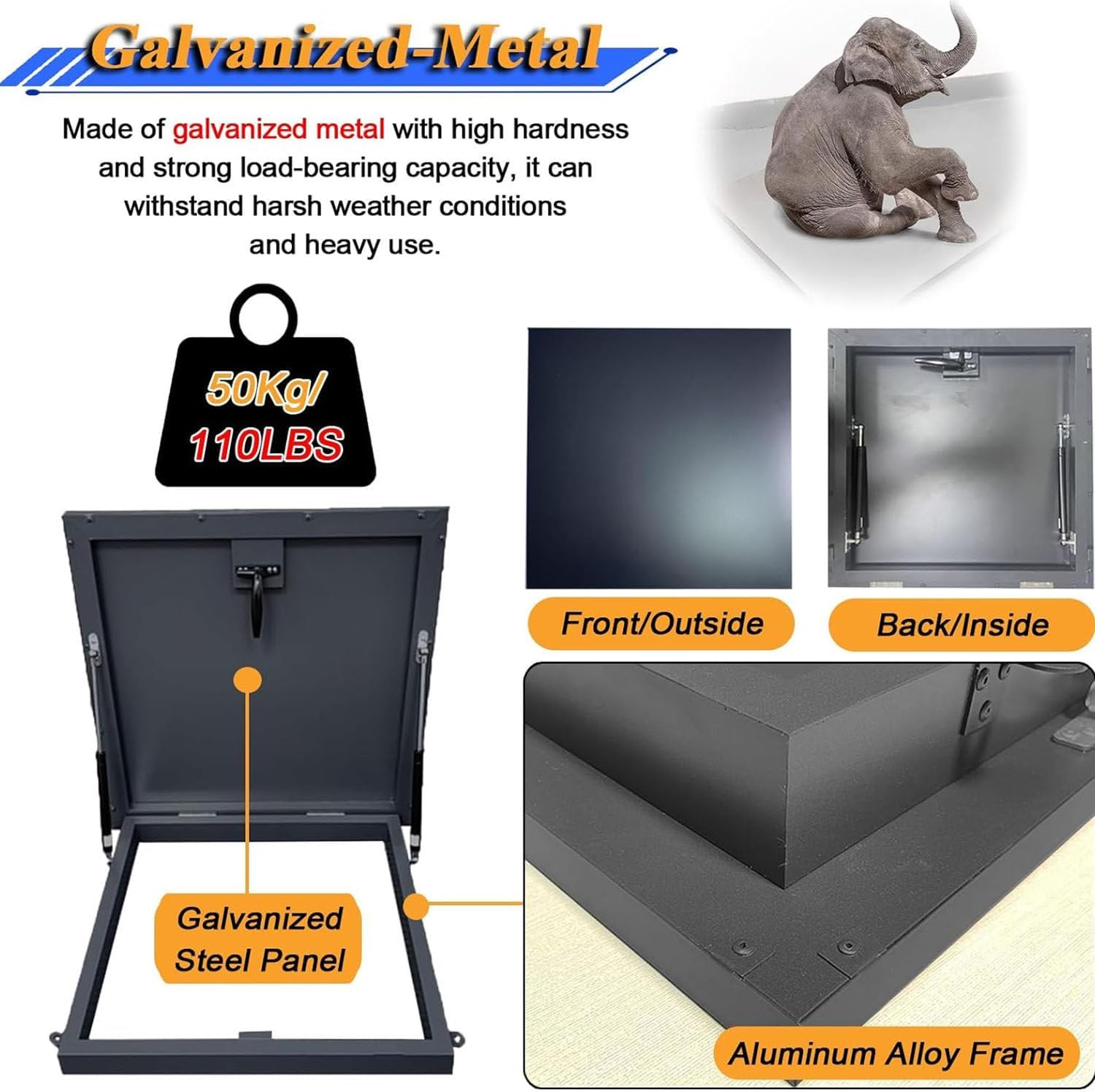Discover the perfect solution for your access needs with our Floor Hatch Rainproof Roof Hatch Cover Plate. Designed for versatility, this large attic socket cover features a convenient handle and a lifting support rod, making it ideal for various settings such as homes, schools, and commercial spaces. Crafted from durable galvanized metal, this roof hatch cover ensures long-lasting performance while maintaining an elegant black finish that blends seamlessly with any environment. The customizable sizes, ranging from 50cm to 100cm in inner diameter, make it easy to find the perfect fit for your specific needs. Our hatch cover is equipped with a specially designed rubber sealing strip that effectively prevents rainwater from seeping through, ensuring that your space remains dry and protected. The innovative handle design allows for effortless opening and closing, while the pneumatic hydraulic support rod enables smooth operation and maintains a secure 90° opening angle, preventing it from being blown away by the wind. Installation is a breeze with pre-drilled bolts provided for easy setup. For enhanced sealing, consider applying a gap-filling adhesive. This roof hatch cover not only enhances safety and accessibility but also adds value to your property by improving its functionality. We are committed to delivering quality products and exceptional customer service. If you have any questions or require assistance, please reach out to us through Amazon, and our team will respond within 24 hours. Elevate your space with our Floor Hatch Rainproof Roof Hatch Cover Plate today!