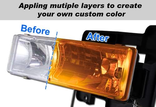 DESCRIPTION:Can be Used on Headlights, Corner Lights, Bumper Lights, Side Markers, Fog Lights, DRL Daytime Running Lights and much moreBrand new never used or installedEasy to useA great upgrade for any vehicleNot recommended for windowsPACKAGE INCLUDES:3 x 110ml Orange Tint Spray CanINSTALLATION:Step 1: Clean the lens completely and wait 5-10 minutes till completely dryStep 2: Spray on paint From 15cm-20cm distanceStep 3: Wait 15 minutes then re-spray again 2-3 times. (Wait 15 minutes each time)Step 4: Wait for the paint to completely dry for at least 24 hours after spraying onPlease make sure not to overspray