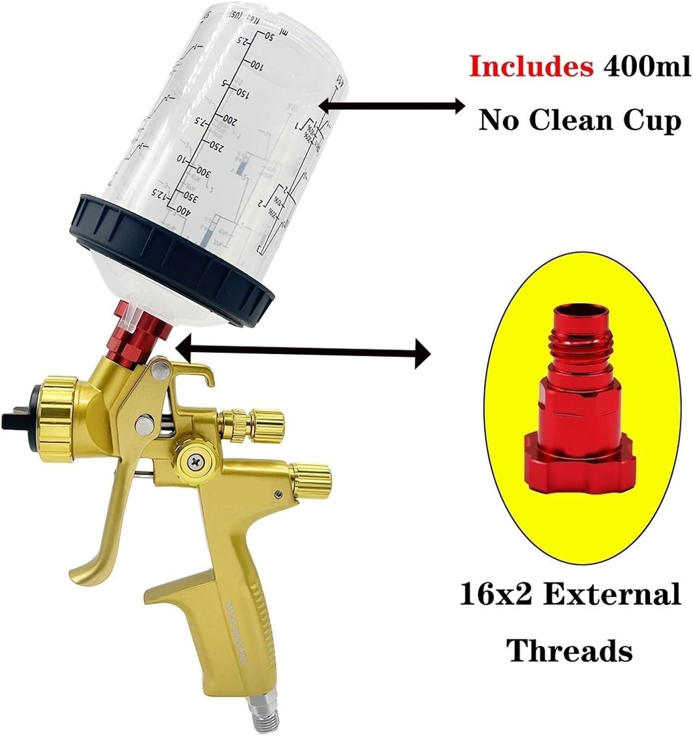 Spray Paint1.3MM HVLP Spray Gun Add 1.8MM Nozzle Kit Car Repair Paint Spray Guns 1000S Air Spray Gun With 400cc Mix Tank AirbrushCup Volume: 600MLAir Inlet: 1/4"Pattern Width: 22Cm-26cmAir Consumption: 6.0CfmCapacity of Cup: 600Nozzle Size: 1.3mm, and 1.8mm nozzle kitSpecificationsAir consumption: 195l/minRecommended inlet pressure: 2- 2.5 barMaximum operating temperature: 50Maximum operating overpressure: 2.0 - 3.0barHign-concerned Chemical : NoneNo-Load Speed : 1200rpm