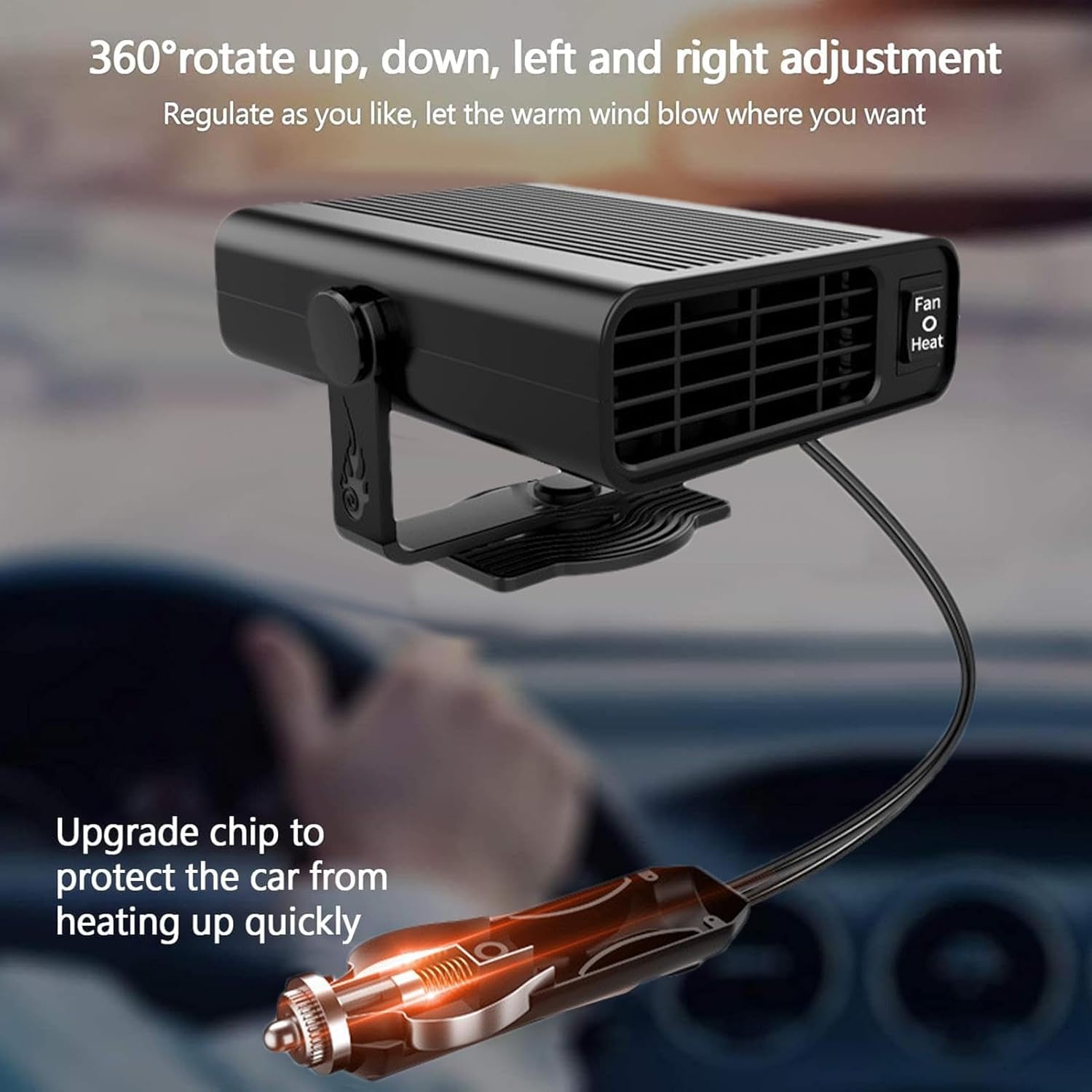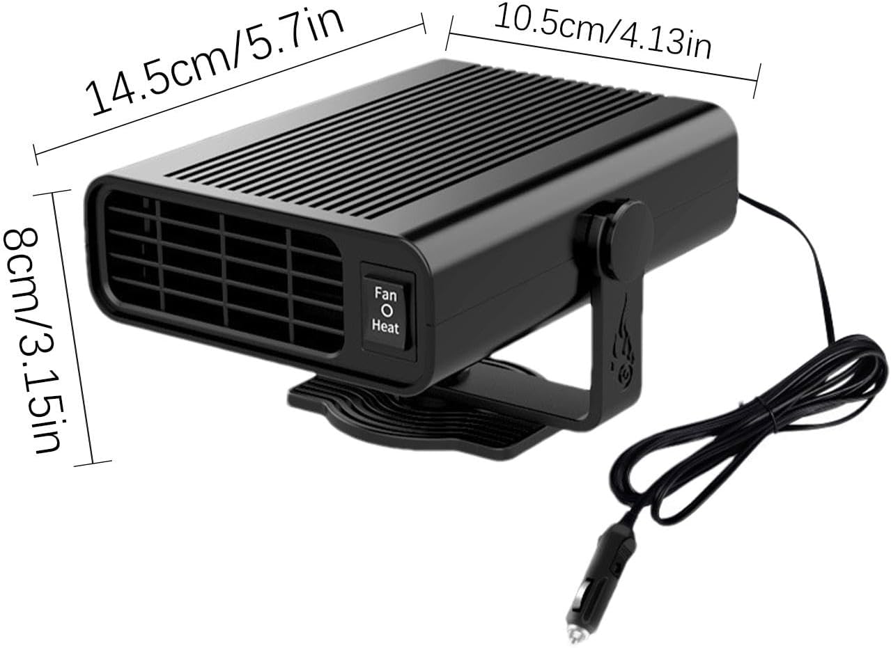 1. Defrost And Defogging: This Car Heater Effectively Removes Frost And Fog From Glass Surfaces, Providing Uninterrupted Visibility In Adverse Weather Conditions And Enhancing Driving Safety2. Fast Heating System: The 1800w High-Density Heating Design Ensures Efficient Car Heating, Delivering Even Warmth In Under 3 Seconds For Maximum Comfort During Cold Weather Use3. Flexible Airflow Control: Experience 360-Degree Airflow And A Multi-Directional Rotation Mechanism For Flexible Use In Any Vehicle Setting, Effortlessly Enhancing Comfort4. Easy To Use: Bottom Buttons Enable Straightforward Operation, And Plug-And-Play Functionality Simplifies Setup And Enhances User Accessibility For All DriversSpecification:Style: Without Bracket, With Bracket (Optional)Length Of Power Line: About 1.5mProduct Material: Abs+FanNote:Due To The Different Monitor And Light Effect, The Actual Color Of The Item Might Be Slightly Different From The Color Showed On The Pictures. Thank You!Please Allow 1-2cm Measuring Deviation Due To Manual Measurement