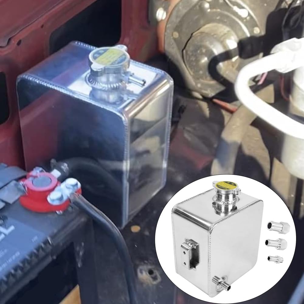 Specifications:Product Name: 2.5 L Coolant Radiator Overflow Expansion Tank (With Cover)Material: Aluminum AlloyColor(Optional): Black/ Silver (Actual color may be different from the pictures due to the different shooting equipment)Note: Please check on your car model details to confirm if this item is fittedFitment:Compatible with vehicles with 11mm, 15mm and 9mm adapter interfaceNote: Please check on your car model details to confirm if this item is fittedPackage Included(Optional):1 x Silver 2.5 L Radiator Coolant Overflow Tank (With Cover)3 x Adapters (11mm, 15mm, 9mm)Batch Variations Notice: Due to ongoing improvements, product details may vary slightly from images shown. Please refer to received item for exact features — each carefully inspected for quality